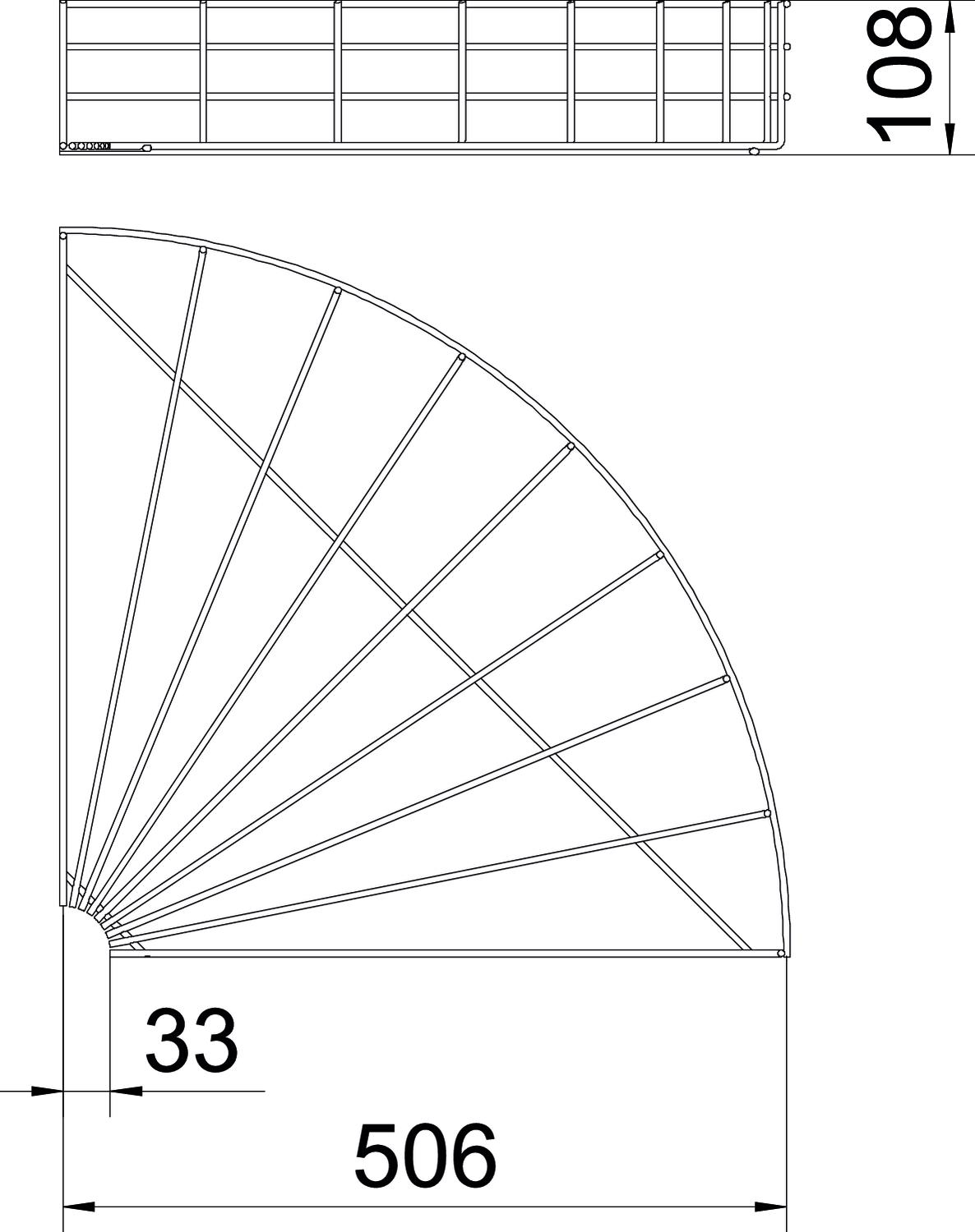 Produkta aprakstsHorizontāls 90° līkums sietveida renēm ar malas augstumu 105 mm.