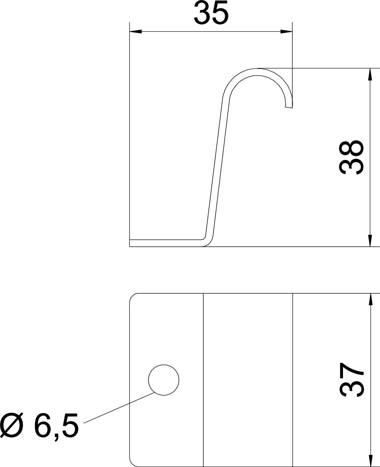 Ar skrūvju piederumiem nē Funkciju nodrošināšana nē Izmērs 38x35x37mm Krāsa cinks Materiāls Tērauds Nerūsējošs tērauds, kodināts nē Piemērots kabeļu renei nē Piemērots kabeļu trepēm nē Piemērots režģveida renei nē Virsma cinkots - Visi tipi