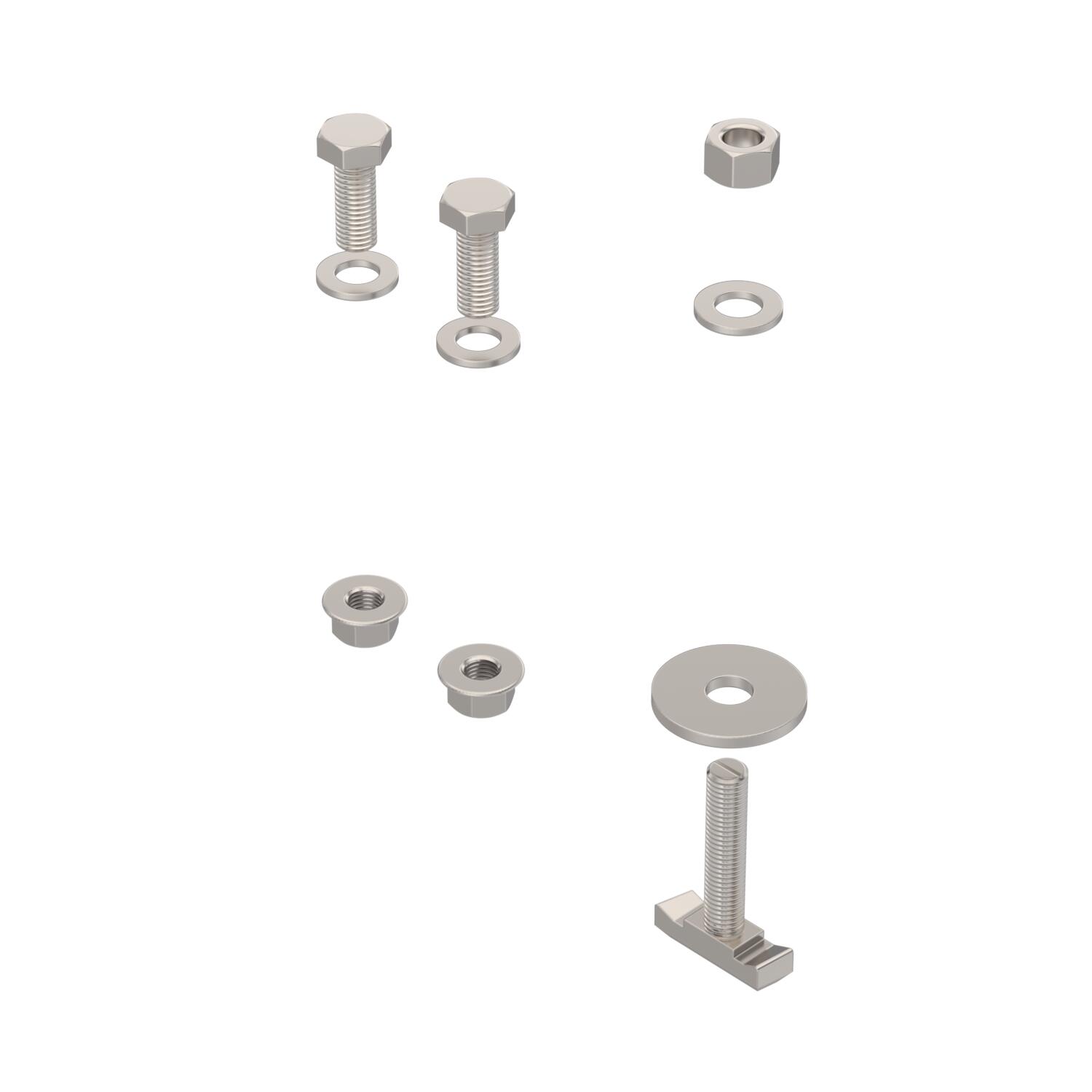 Produkta aprakstsSkrūvju komplekts no sešstūrgalvas skrūvēm M12, sešstūra uzgriežņiem ar atloku M12, taisnstūrveida galvas skrūves un paplāksnēm. Tipa LB FT perforēto lenšu nostiprināšanai uz brīvi stāvošas fotoelektrisko elementu montāžas sistēmas iepriekš montēto siju aizmugurējiem atbalstiem.