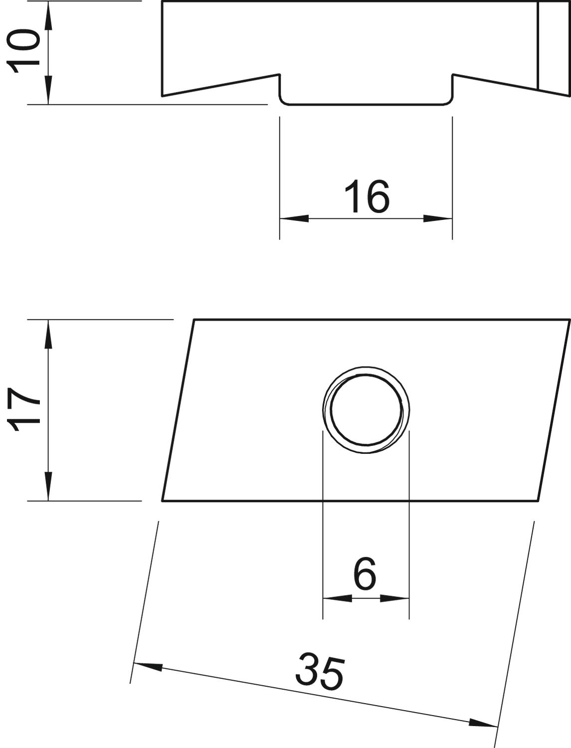 Ar atsperi nē Augstums 10 mm CO2 pēdas nospiedums (GWP) no šūpuļa līdz vārtiem 0,087 kg CO2e / 1 Gabals Garums 35 mm Izmērs M6 Izmērs B 17 mm Izmērs H 10 mm Izmērs L 30 mm Materiāls Tērauds Metriskā vītne 6 Platums 17 mm Virsma Cinka lamele Vītne M6 - Visi tipi