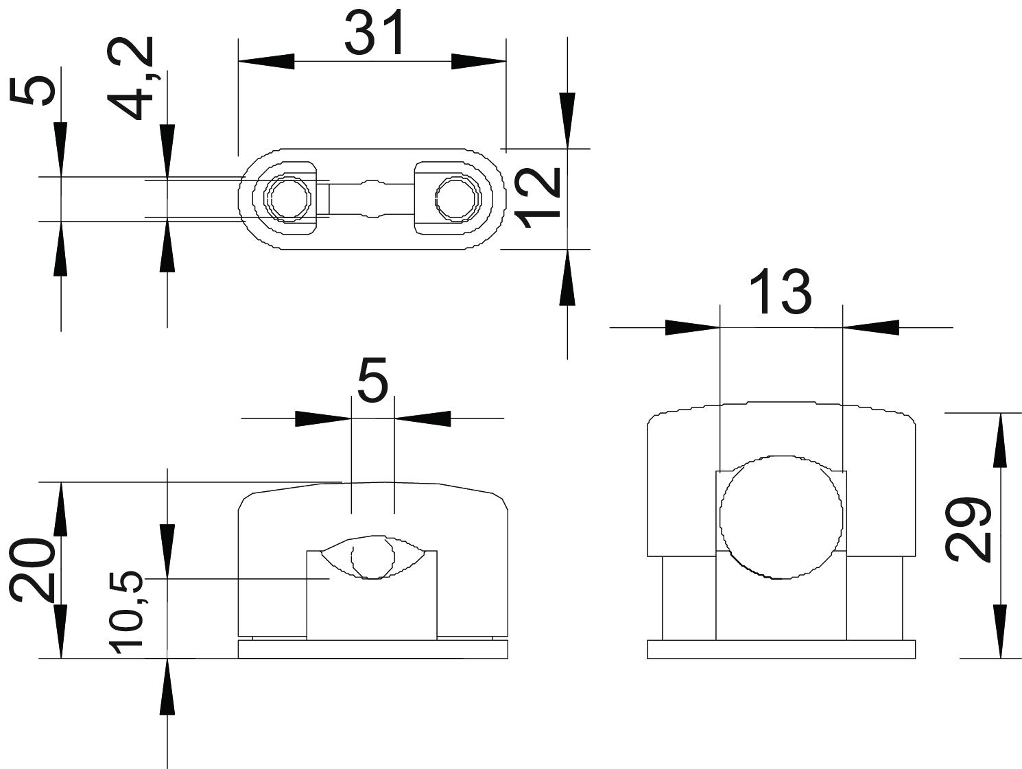 ar plastmasas apvalku nē CO2 pēdas nospiedums (GWP) no šūpuļa līdz vārtiem 0,0207 kg CO2e / 1 Gabals Izmērs d min. 5 mm Izmērs 5-13mm Izmērs b 12 mm Izmērs b1 4,2 mm Izmērs b2 5 mm Izmērs d, maks. 13 mm Izmērs H1 10,5 mm Izmērs H2 20 mm Izmērs H3 29 mm Izmērs L 31 mm Izpildījums slēgts Kabeļu/ cauruļu skaits 1 Krāsa gaiši pelēks; RAL 7035 Materiāls Polistirols Nesatur halogēnus jā Piemērots ugunsdrošības zonai nē Skrūve M5 x 14 Spriegošanas diapazons D maks. 14 mm Spriegošanas diapazons D min. 5 mm Stiprinājuma veids Caurums skrūvēšanai UV izturīgs nē - Visi tipi