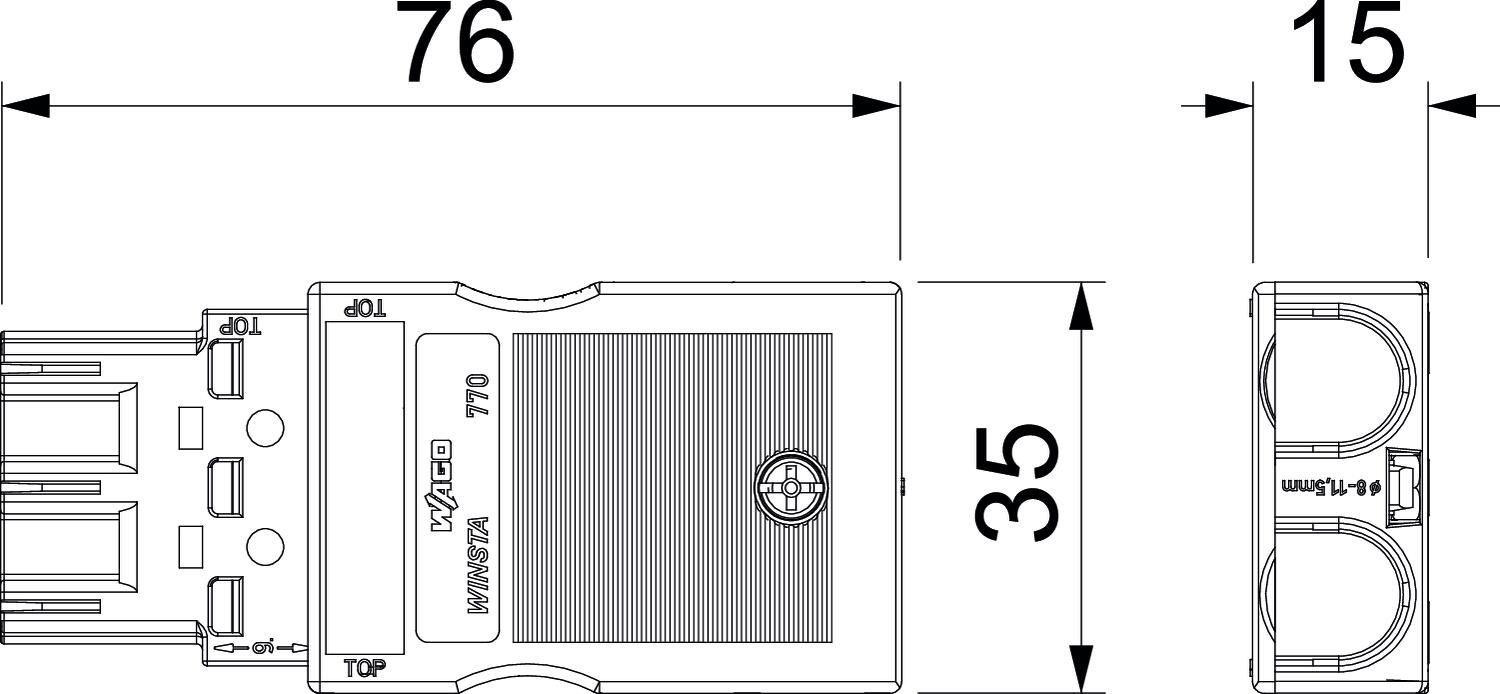 Produkta aprakstsSpraudnis 3 polu, tips WINSTA® MIDI ar skavas savienojumu.