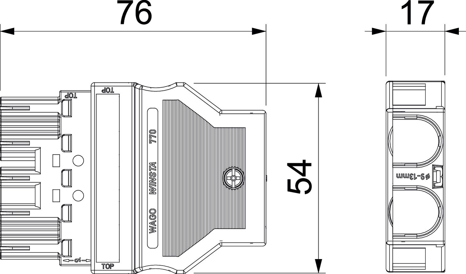 Produkta aprakstsSpraudnis 5 polu, tips WINSTA® MIDI ar skavas savienojumu.