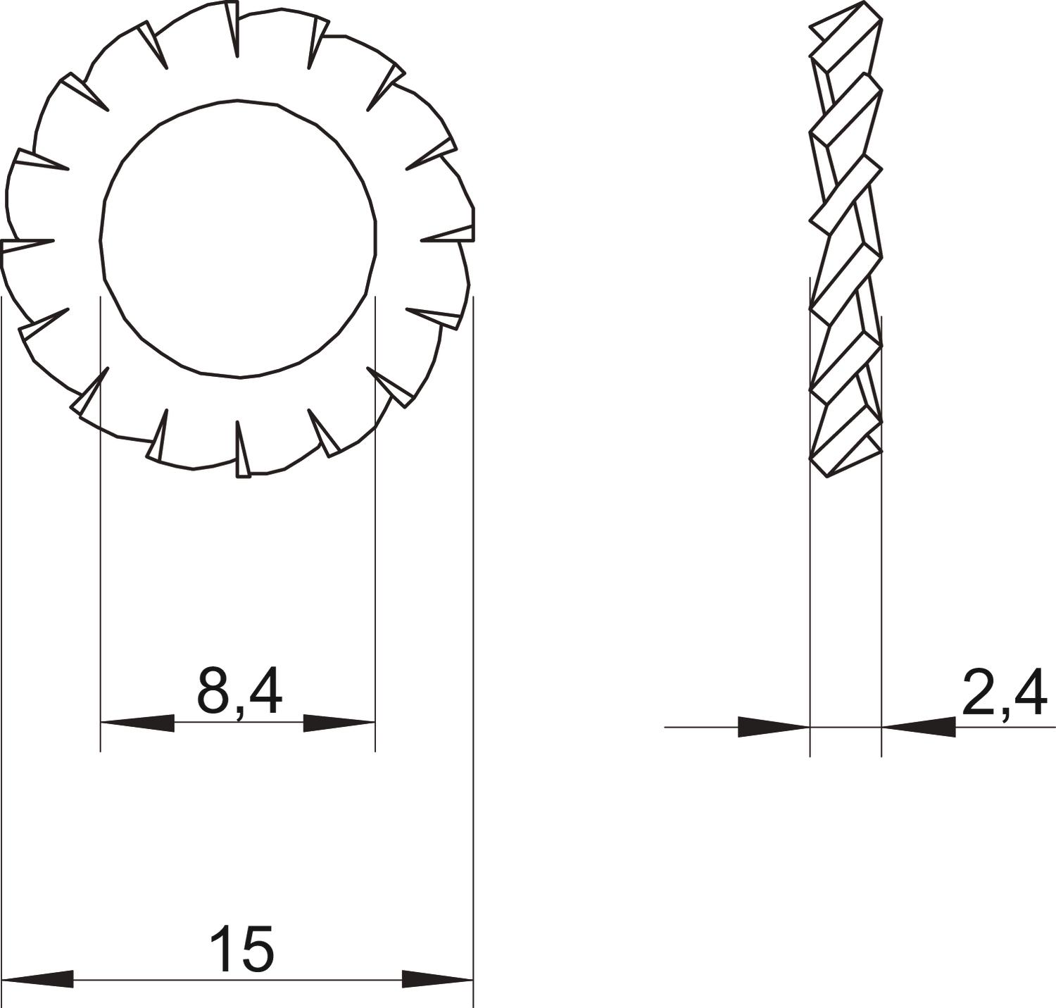 Ārējais diametrs 15 mm Augstums 2,4 mm Biezums 2,4 mm CO2 pēdas nospiedums (GWP) no šūpuļa līdz vārtiem 0,0032 kg CO2e / 1 Gabals Iekšējais diametrs 0,33 mm Izmērs M8 Izmērs d 8,4 mm Izmērs D, min. 15 mm Izmērs H 2,4 mm Loksnes biezums 0,09 in Materiāls Nerūsējošais tērauds Sprostpaplāksnes versija atvērta ārējā sazobe Virsma neizolēts, apstrādāts Vītne M8 - Visi tipi