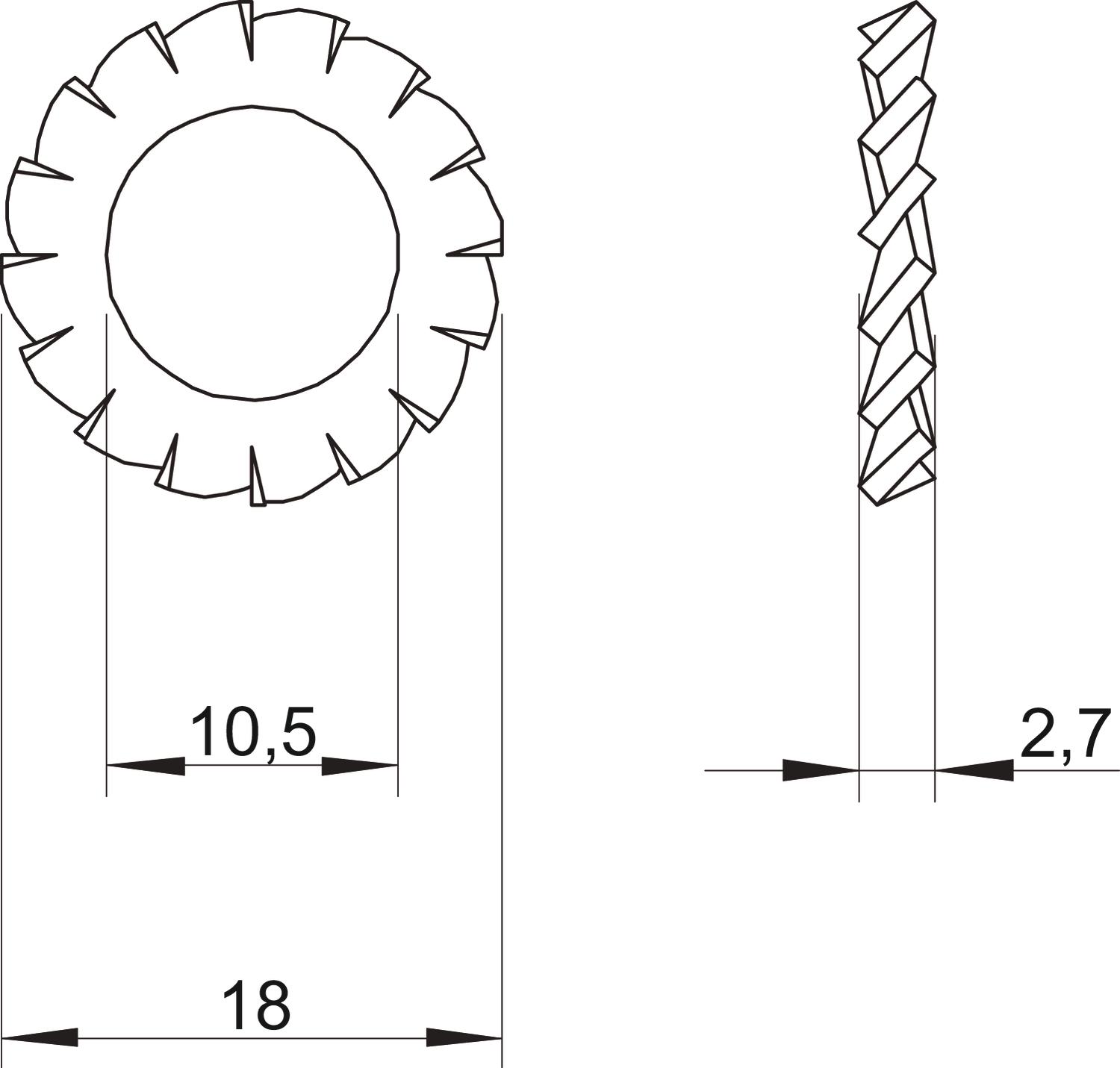 Ārējais diametrs 18 mm Augstums 2,7 mm Biezums 2,7 mm CO2 pēdas nospiedums (GWP) no šūpuļa līdz vārtiem 0,0066 kg CO2e / 1 Gabals Izmērs M10 Izmērs d 10,5 mm Izmērs d maks. 18 mm Izmērs D, min. 18 mm Izmērs H 2,7 mm Materiāls Nerūsējošais tērauds Sprostpaplāksnes versija atvērta ārējā sazobe Virsma neizolēts, apstrādāts Vītne M10 - Visi tipi
