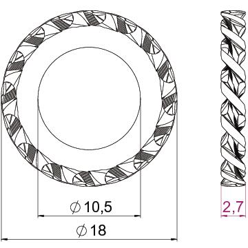 Ārējais diametrs 18 mm Augstums 2,7 mm Biezums 2,7 mm CO2 pēdas nospiedums (GWP) no šūpuļa līdz vārtiem 0,0033 kg CO2e / 1 Gabals Iekšējais diametrs 0,41 mm Izmērs M10 Izmērs d 10,5 mm Izmērs d maks. 18 mm Izmērs D, min. 18 mm Izmērs H 2,7 mm Loksnes biezums 0,11 in Materiāls Tērauds Sprostpaplāksnes versija atvērta ārējā sazobe Virsma galvaniski cinkota Vītne M10 - Visi tipi
