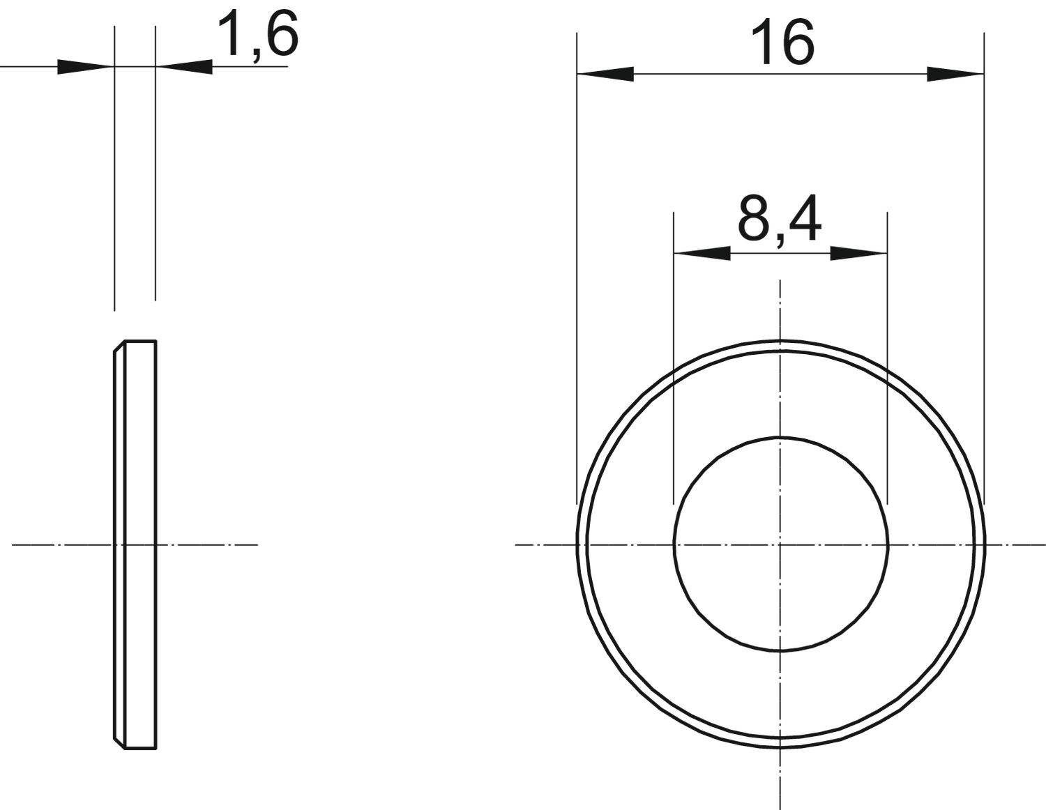 Ar zobiem nē Ārējais diametrs 16 mm Cauruma diametrs 8,4 mm Cauruma forma apaļš CO2 pēdas nospiedums (GWP) no šūpuļa līdz vārtiem 0,009 kg CO2e / 1 Gabals Diametrs 16 mm Iekšējais diametrs 8,4 mm Izmērs M8 Izmērs d 8,4 mm Izmērs D, min. 16 mm Izmērs H 1,6 mm Materiāla biezums 1,6 mm Materiāls Nerūsējošais tērauds Virsma neizolēts, apstrādāts Vītne M8 - Visi tipi
