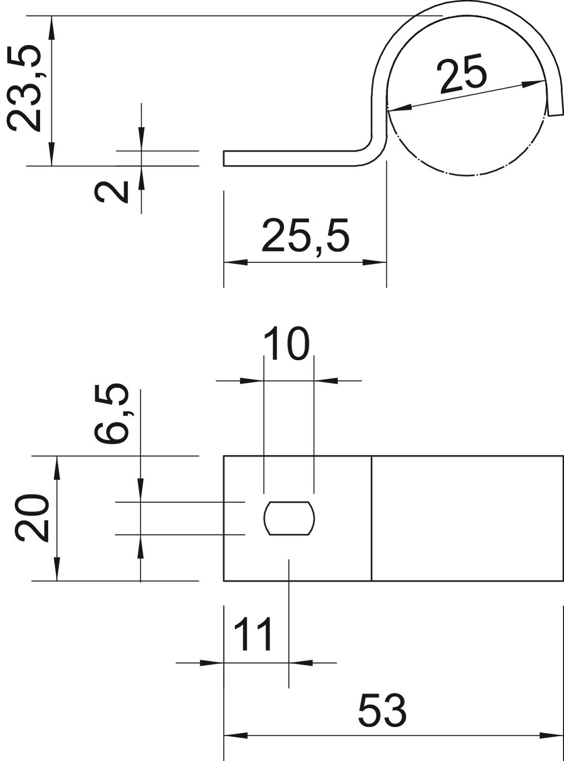 Produkta aprakstsStiprinājuma apskava, stiprināma vienā pusē, 25 mm