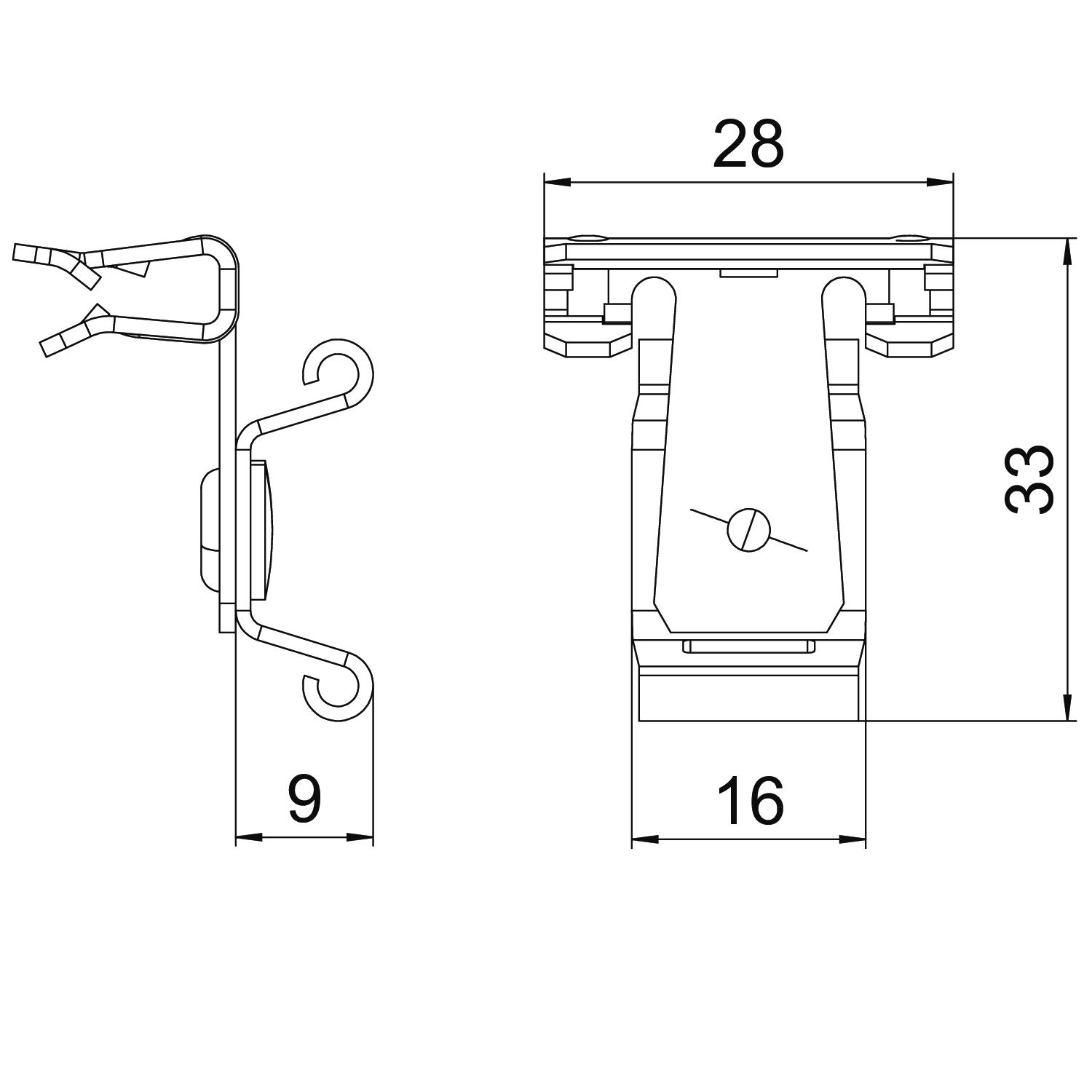 Ar eņģēm nē Atloka biezums F maks. 4 mm Atloka biezums F min. 1,5 mm Augstums 24 mm Dimension W 28 mm Eņģes, regulējamas nē Garums 33 mm Izmērs 1,5-4mm Izmērs L 33 mm Krāsa cinks Materiāls Tērauds Min. pārraušanas spēks 0,22 kN Pievienojuma veids / būvdetaļa Caurule/kabelis Platums 28 mm Stiprinājuma veids Spailes Virsma Cinka lamele - Visi tipi