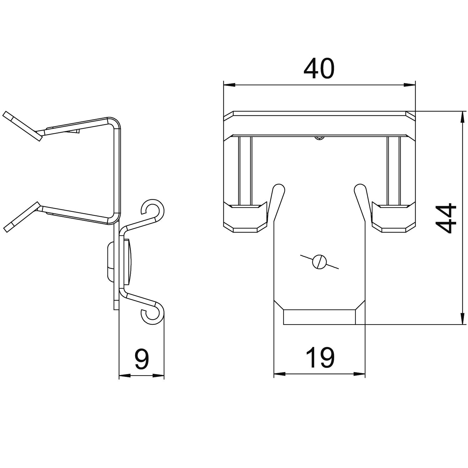 Ar eņģēm nē Atloka biezums F maks. 20 mm Atloka biezums F min. 15 mm Augstums 33 mm Dimension W 40 mm Eņģes, regulējamas nē Garums 44 mm Izmērs 15-20mm Izmērs L 44 mm Krāsa cinks Materiāls Tērauds Min. pārraušanas spēks 0,22 kN Pievienojuma veids / būvdetaļa Caurule/kabelis Platums 40 mm Stiprinājuma veids Spailes Virsma Cinka lamele - Visi tipi