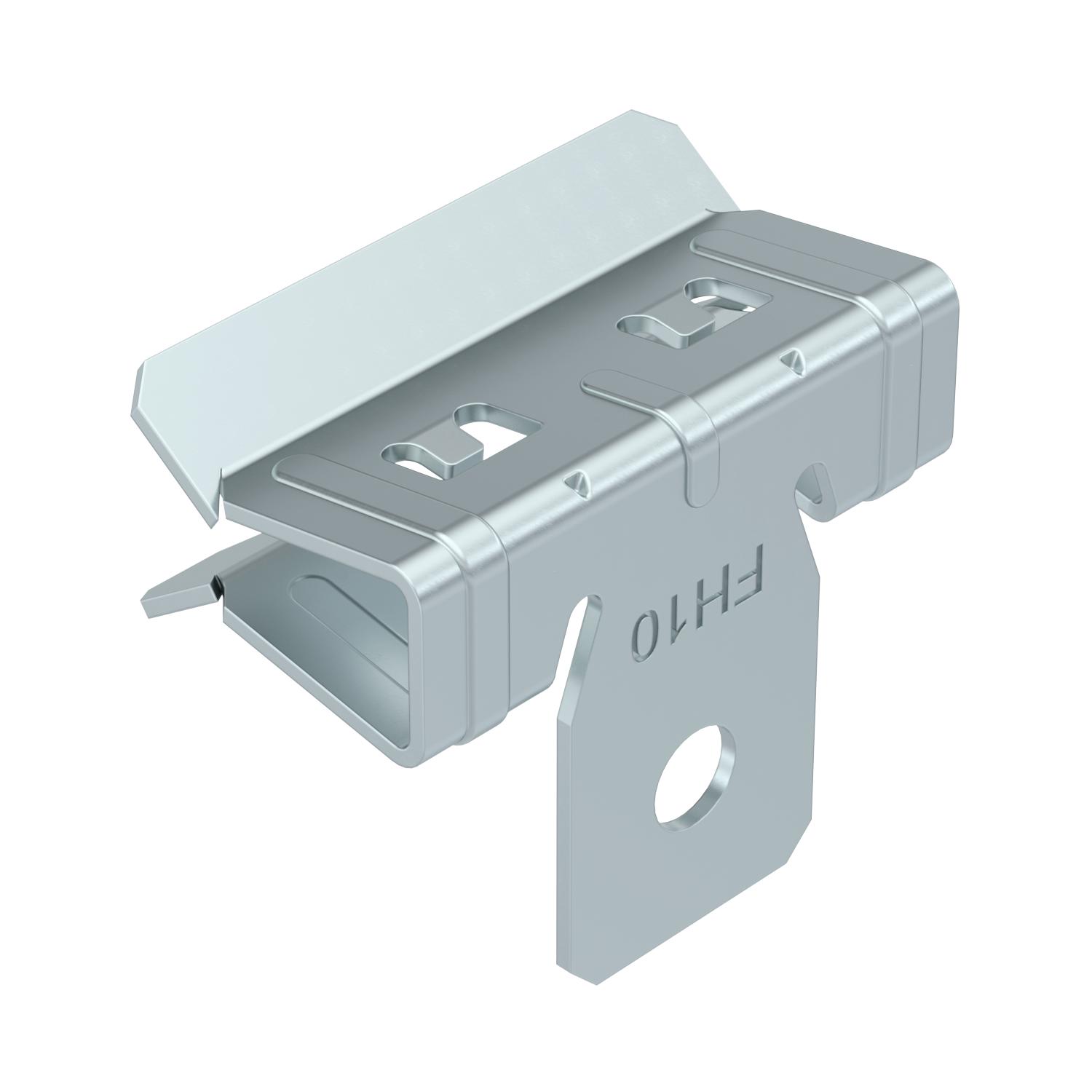 Produkta aprakstsStiprinājuma skava ar urbumu individuāliem montāžas risinājumiem, piem., S veida āķu vai ķēžu stiprināšanai. Nostiprināšana uz tērauda balstiem ar uzsišanu.