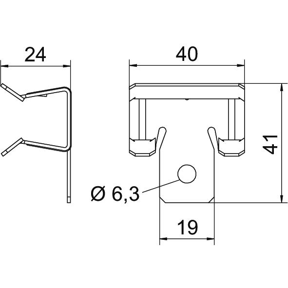 Ar eņģēm nē Atloka biezums F maks. 20 mm Atloka biezums F min. 15 mm Augstums 24 mm Dimension W 40 mm Eņģes, regulējamas nē Garums 41 mm Izmērs 15-20mm Izmērs L 41 mm Krāsa cinks Materiāls Tērauds Min. pārraušanas spēks 0,95 kN Pievienojuma veids / būvdetaļa Caurums Platums 40 mm Stiprinājuma veids Spailes Stiprināšanas caurums 6,5 mm Virsma Cinka lamele - Visi tipi