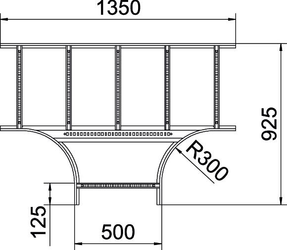 Produkta aprakstsHorizontāla T veida detaļa ar iemetinātu spraisli visu veidu kabeļu trepēm, kuru malas augstums ir 110 mm.
