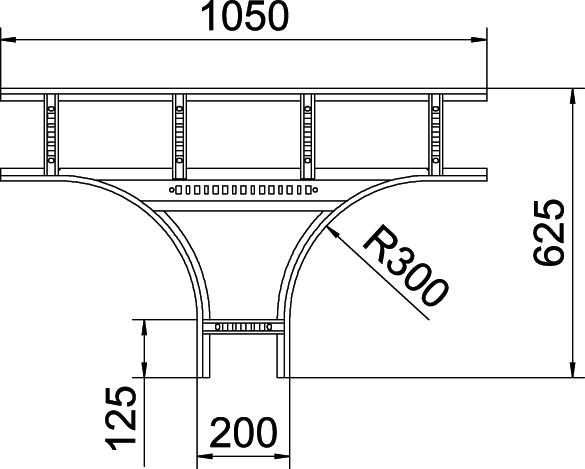 Produkta aprakstsHorizontāla T veida detaļa ar iemetinātu spraisli visu veidu kabeļu trepēm, kuru malas augstums ir 110 mm.