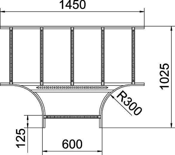 Produkta aprakstsHorizontāla T veida detaļa ar iemetinātu spraisli visu veidu kabeļu trepēm, kuru malas augstums ir 110 mm.