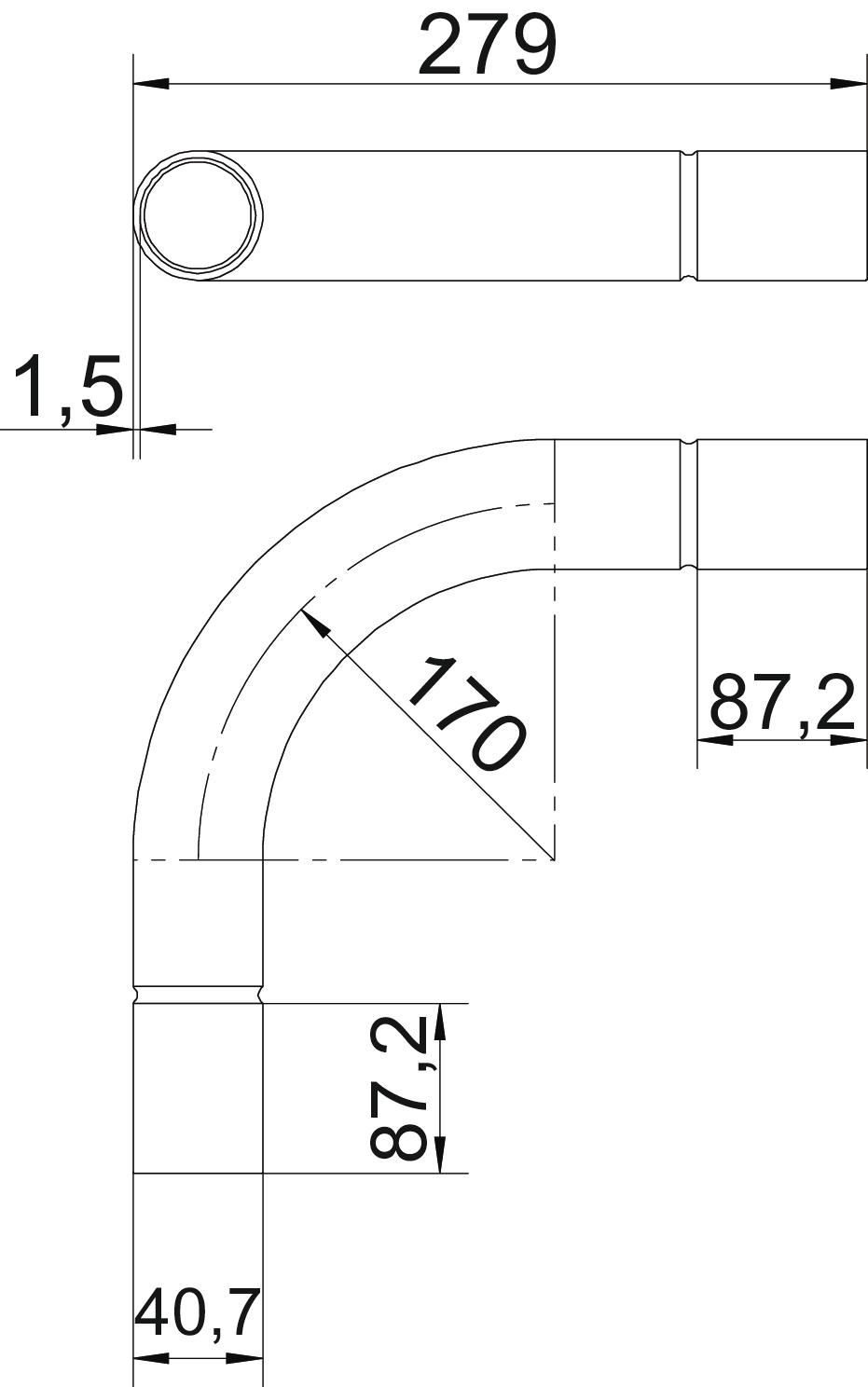 Ar apskates atveri un vāku nē Ar uzmavu jā caurules nominālajam diametram 40 mm CO2 pēdas nospiedums (GWP) no šūpuļa līdz vārtiem 1,5921 kg CO2e / 1 Gabals Divdaļīgs nē Elastīgs nē Izmērs Ø40mm Izmērs A 87,2 mm Izmērs B 279 mm Izmērs D 43,7 mm Izmērs d 40,7 mm Izmērs l 50 mm Izmērs m (mm) M40 Izmērs R 170 mm Izmērs t 1,5 mm Izpildījums Spraud- Krāsa melns; RAL 9005 Līkuma leņķis 90 ° Materiāls Tērauds Nesatur halogēnus nē Pulēta virsma nē Virsma PES50 – poliesters/epoksīds Virsma matēta nē - Visi tipi