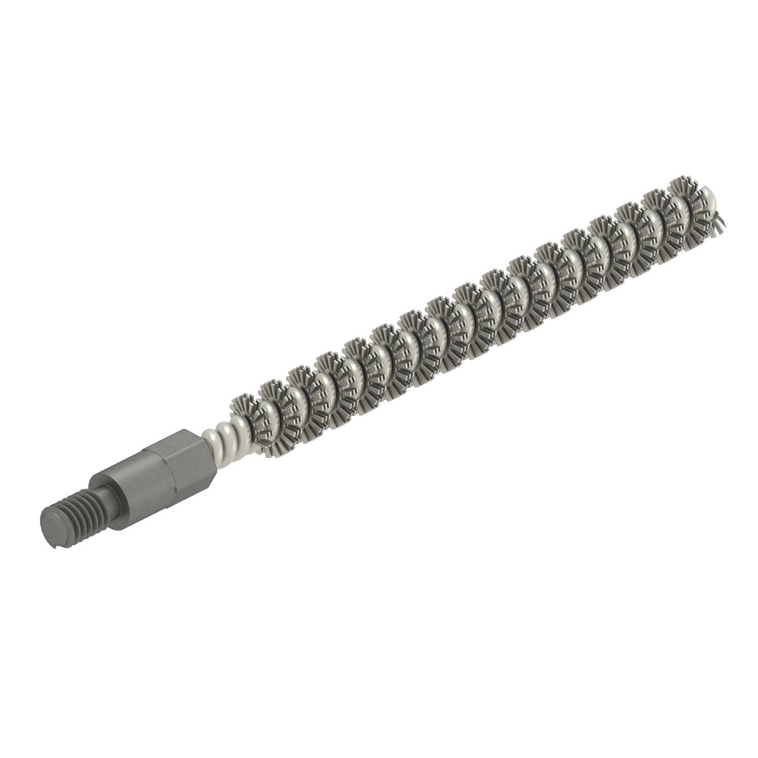 Tērauda stiepļu birste tiek nofiksēta uz SDS adaptera ar vītnes pieslēgumu, lai izurbtos caurumus iztīrītu ar urbjmašīnu.