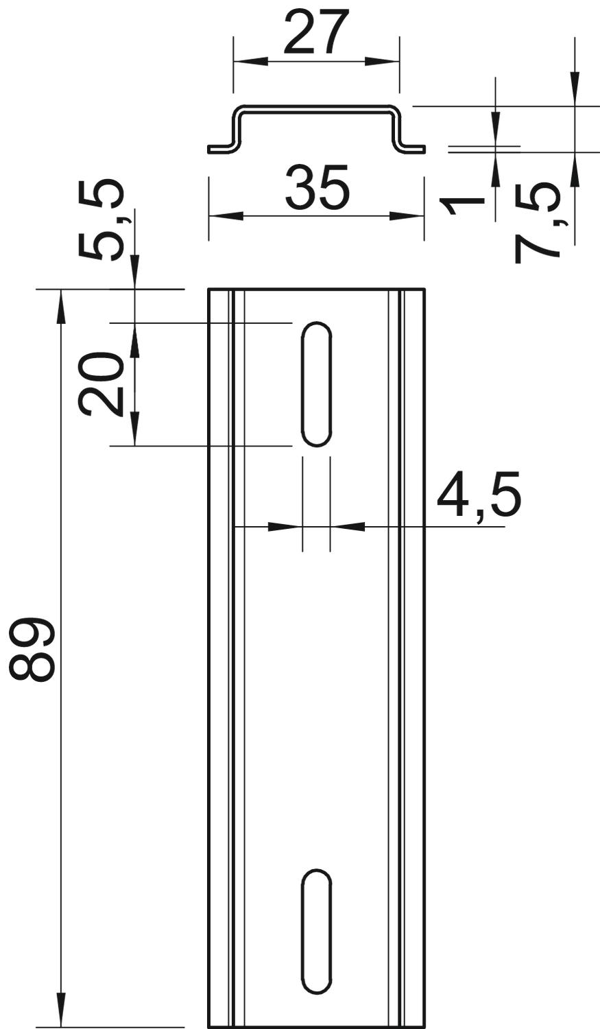 Produkta aprakstsU profila sliede 35 x 7,5 mm atbilstoši DIN EN 60715 (agrāk DIN EN 50022).