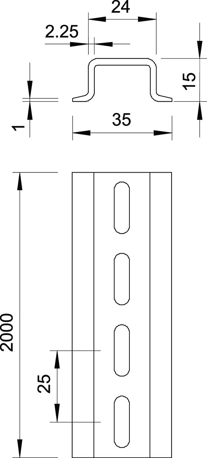 Produkta aprakstsU profila sliede 35 x 15 mm atbilstoši DIN EN 60715 (agrāk DIN EN 50022).
