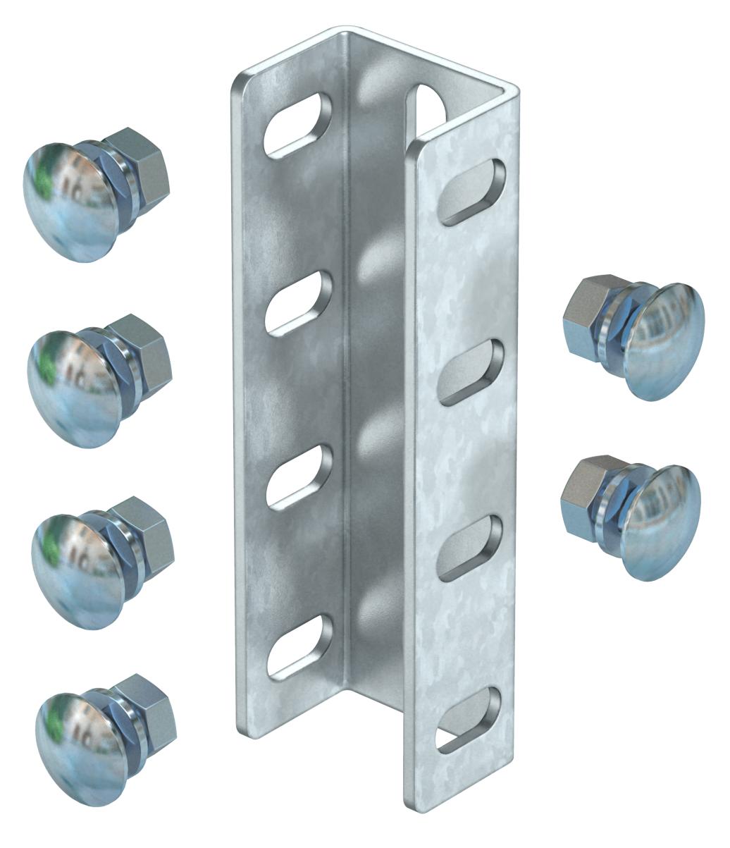 Ar skrūvju piederumiem jā Augstums 45 mm Cauruma lielums 13 x 26 mm CO2 pēdas nospiedums (GWP) no šūpuļa līdz vārtiem 2,0975 kg CO2e / 1 Gabals Garums 190 mm Izmēri 45 x 61 x 190 Izmērs 190x61 Krāsa cinks Materiāla biezums 4 mm Materiāls Tērauds Nerūsējošs tērauds, kodināts nē Perforējuma veids Perforētas 3 puses Piemērots profila formām U veida profils Platums 61 mm Profila forma U veida profils Urbto caurumu attālums vidū 50 mm Virsma karsti cinkots - Visi tipi