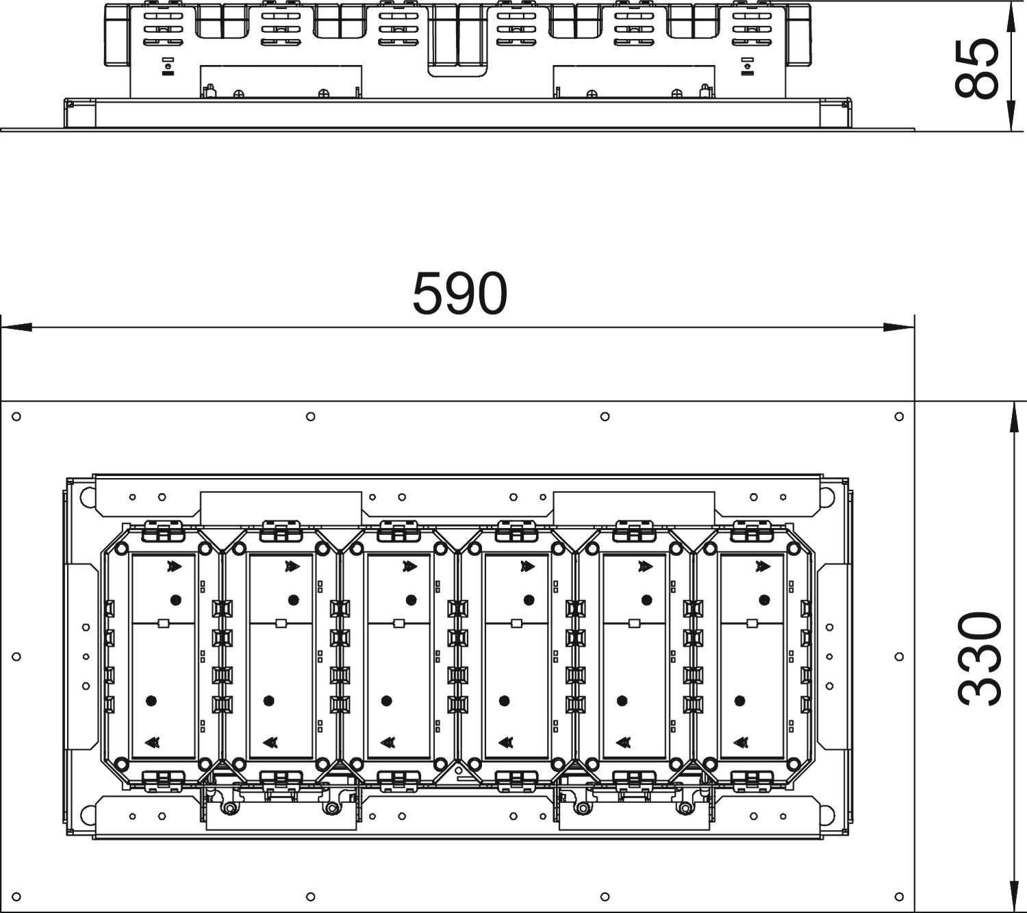 Piegādes komplektā ir iekļauts viens montāžas vāks un seši universālie balsti UT3 katrām trīs Modul 45® ierīcēm.