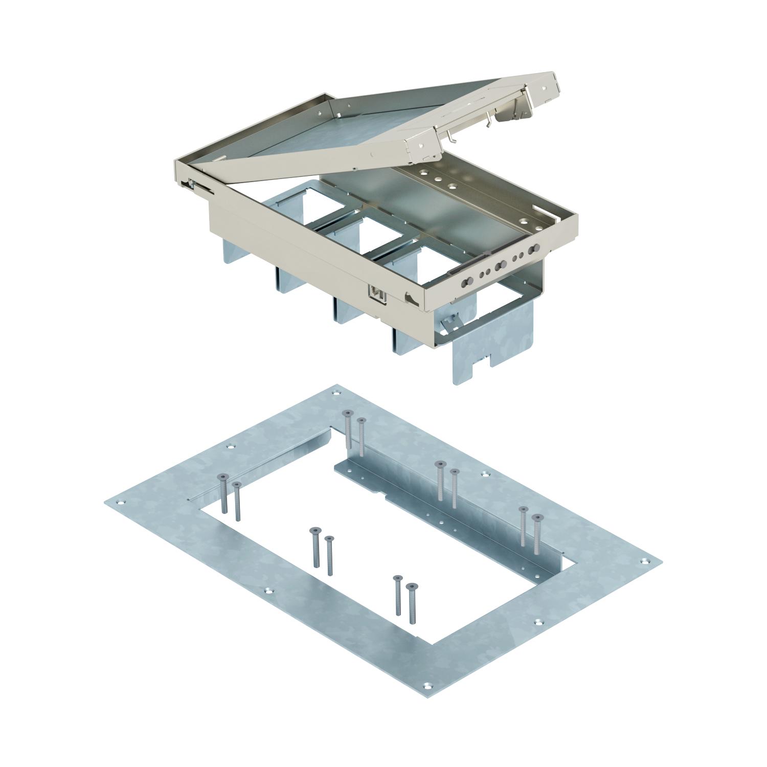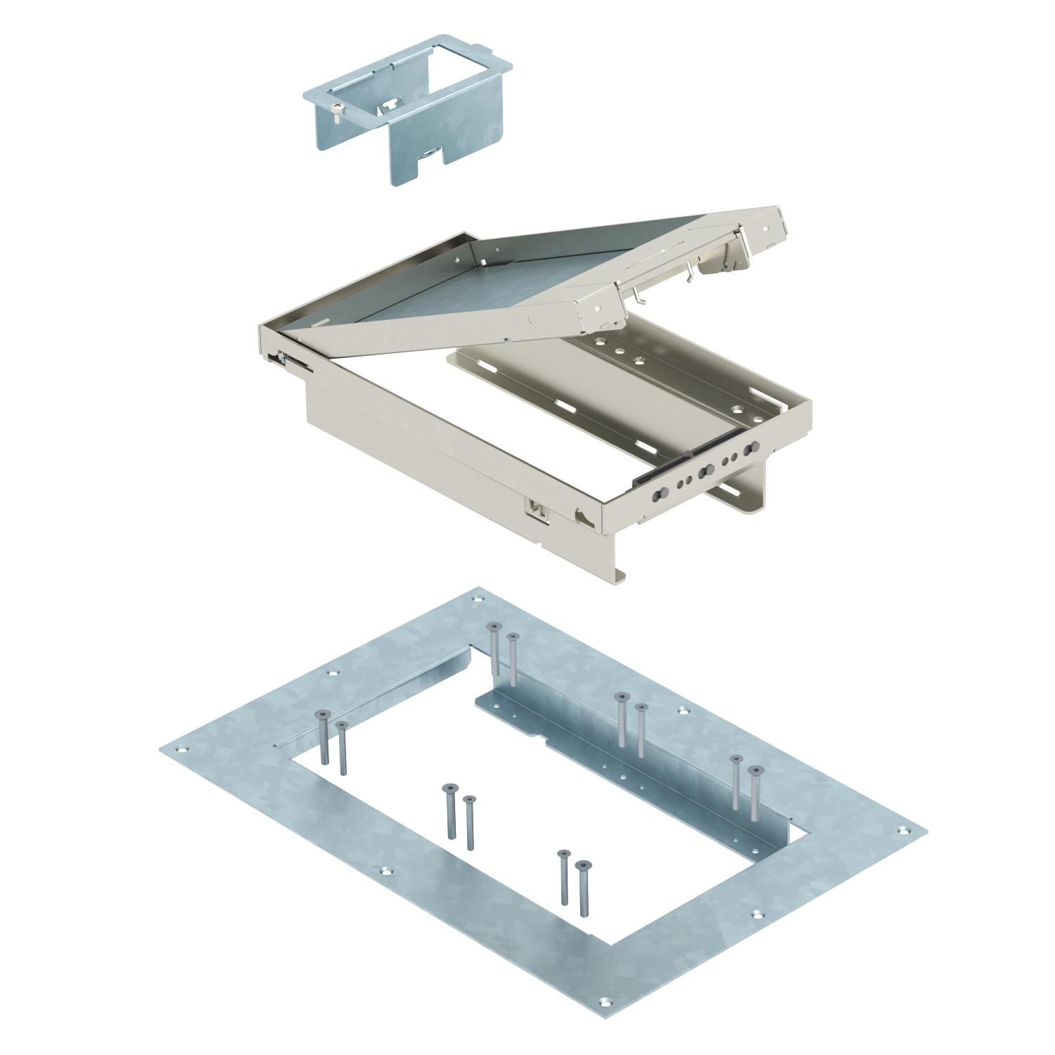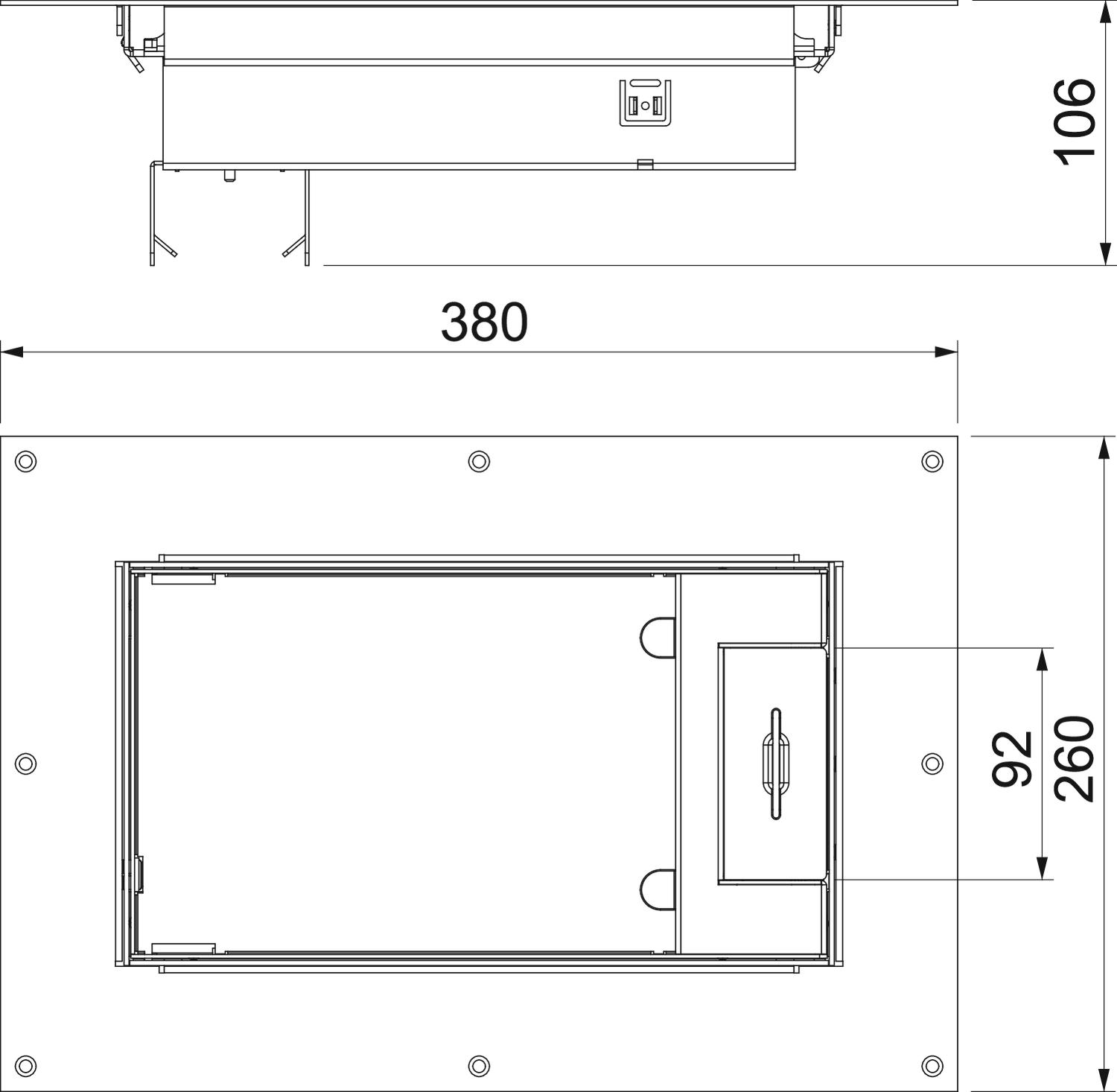 Augstums 106 mm CO2 pēdas nospiedums (GWP) no šūpuļa līdz vārtiem 21,9803 kg CO2e / 1 Gabals Garums 380 mm Grīdas seguma biezums 15 mm Iebūvējamo ierīču skaits 8 Ierīču kārbu skaits 4 Kabeļu izvada izpildījums Pagriežams kabeļa izvads Materiāls Nerūsējošais tērauds 1.4301 Platums 260 mm - Visi tipi