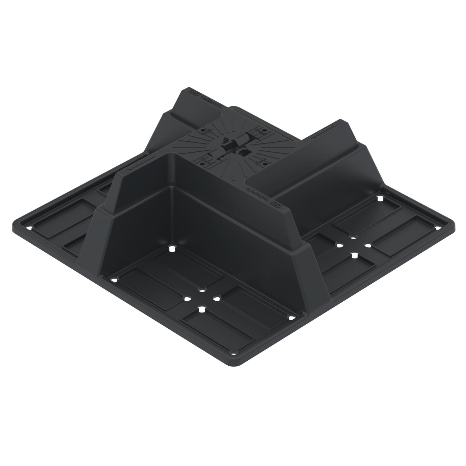 Produkta aprakstsUniversāla balsta kāja balastam ar bruģakmeņiem līdz 200x100x100 mm izmēram. Var izmantot uz plakaniem jumtiem, piem., fotoelektrisko montāžas sistēmu montāžai vai kabeļu ievilkšanai ar tīkla kabeļu renēm kopā ar jumta vadu turētāju 165 MBG.