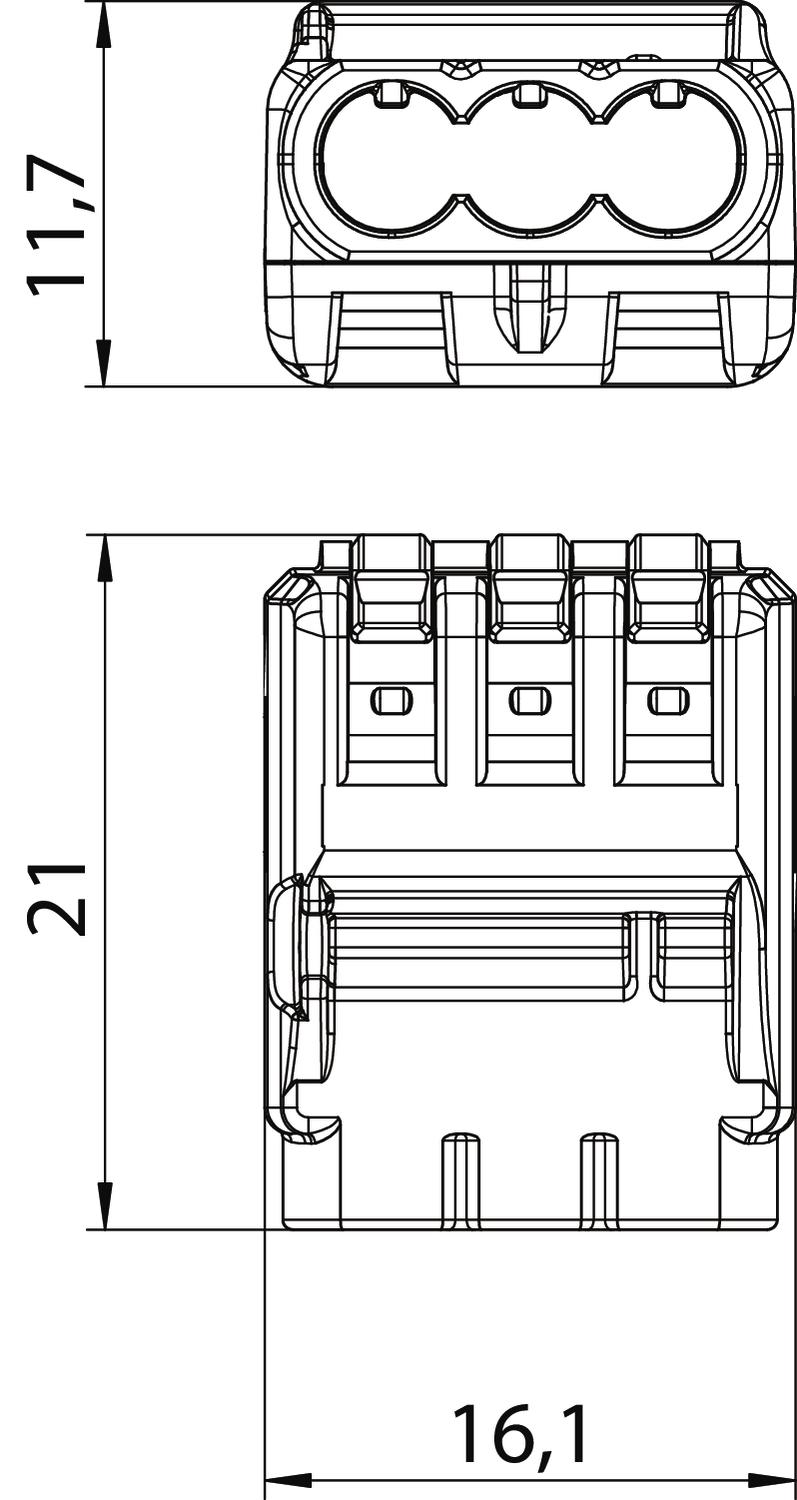 Ar vadības svirām jā Augstums 11,7 mm Garums 16,1 mm Izmantošanas temperatūras diapazons maks. 85 °C Izmantošanas temperatūras diapazons min. -5 °C Izmērs 0,2-2,5mm² Izolācijas materiāls Termoplasts Klemmes daudzums 3 Krāsa Caurspīdīgs Materiāls Polikarbonāts Nominālā strāva 24 A Nominālais diametrs maks. 2,5 mm² Nominālais diametrs min. 0,2 mm² Nominālais spriegums 450 V Piemērots elastīgiem vadiem jā Piemērots vairākdzīslu vadiem jā Piemērots viendzīslas kabelim jā Pievienojams vada šķērsgriezums, vairāku dzīslu maks. 2,5 mm² Pievienojams vada šķērsgriezums, vairāku dzīslu min. 0,2 mm² Pievienojams vada šķērsgriezums, viendzīslas maks. 2,5 mm² Pievienojams vada šķērsgriezums, viendzīslas min. 0,2 mm² Platums 21 mm Polu skaits 1 Šķērsgriezums 3 x 0,2–2,5 mm² daudzdzīslu vadi / viendzīslas vadi mm² ugunsizturīgs atb. VDE 0471/DIN 695, daļa 2-1, pārbaudes temperatūra 850°C - Visi tipi