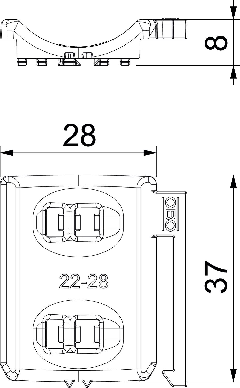 Aizsargčaulas/skavu konstrukcija Prettvertne CO2 pēdas nospiedums (GWP) no šūpuļa līdz vārtiem 0,0145 kg CO2e / 1 Gabals Izmērs 22-28mm Izmērs B 33,5 mm Izmērs H 8,3 mm Izmērs L 37 mm Krāsa gaiši pelēks; RAL 7035 Materiāls Polipropilēns Piemērots maks. kabeļu diametram 28 mm Spriegošanas diapazons D maks. 28 mm Spriegošanas diapazons D min. 22 mm - Visi tipi