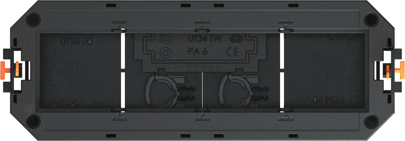 Produkta aprakstsUniversālais balsts ar diviem kabeļu nostiepes fiksatoriem, montāžas tiltiem, starpsienu un nosegplāksni UT4 P4 4 Modul 45 ierīču iebūvei ierīču montāžas kārbās ar nominālo lielumu R7, R9 un 9.