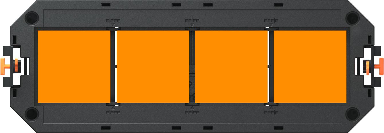 Universālais balsts ar diviem kabeļu nostiepes fiksatoriem, starpsienu un nosegplāksni UT4 P4 4 Modul 45 ierīču iebūvei ierīces statīvā OKB IT.