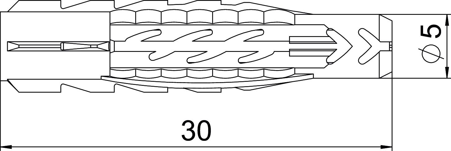 Ar skrūvēm nē Diametrs 5 mm Garums 30 mm Izmērs 5x30 Izmērs D 5 mm Izmērs L 30 mm Izpildījums Universālais dībelis Krāsa gaiši pelēks Materiāls Poliamīds Piemērots nostiprināšanai ar kabeļu saitēm nē Piemērots sešstūrgalvas kokskrūvei jā Piemērots skrūvei ar diametru maks. 4 mm Piemērots skrūvei ar diametru min. 3 mm Urbtā cauruma dziļums 40 mm - Visi tipi