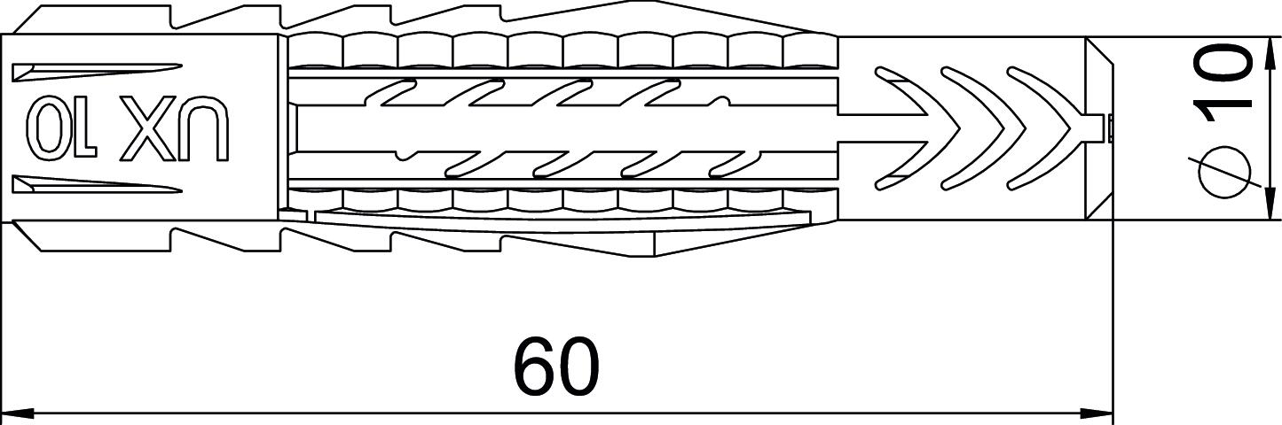 Ar skrūvēm nē Diametrs 10 mm Garums 60 mm Izmērs 10x60 Izmērs D 10 mm Izmērs L 60 mm Izpildījums Universālais dībelis Krāsa gaiši pelēks Materiāls Poliamīds Piemērots nostiprināšanai ar kabeļu saitēm nē Piemērots sešstūrgalvas kokskrūvei jā Piemērots skrūvei ar diametru maks. 8 mm Piemērots skrūvei ar diametru min. 6 mm Urbtā cauruma dziļums 75 mm - Visi tipi