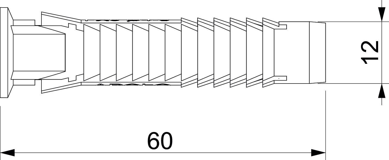 Ar skrūvēm nē Diametrs 12 mm Garums 60 mm Izmērs 12x60 Izmērs D 12 mm Izmērs L 60 mm Izpildījums Universālais dībelis Izvilkšanas pretestības vērtības 1910 N Koka skrūves 8-10 Krāsa gaiši pelēks Materiāls Polietilēns Piemērots nostiprināšanai ar kabeļu saitēm nē Piemērots sešstūrgalvas kokskrūvei jā Urbtā cauruma diametrs min. 12 mm - Visi tipi