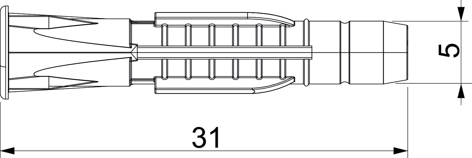 Ar skrūvēm nē Diametrs 5 mm Garums 30 mm Izmērs 5x31 Izmērs D 5 mm Izmērs L 31 mm Izpildījums Universālais dībelis Koka skrūves 3-4 Krāsa gaiši pelēks Materiāls Poliamīds Piemērots nostiprināšanai ar kabeļu saitēm nē Piemērots sešstūrgalvas kokskrūvei jā Urbtā cauruma diametrs min. 5 mm - Visi tipi