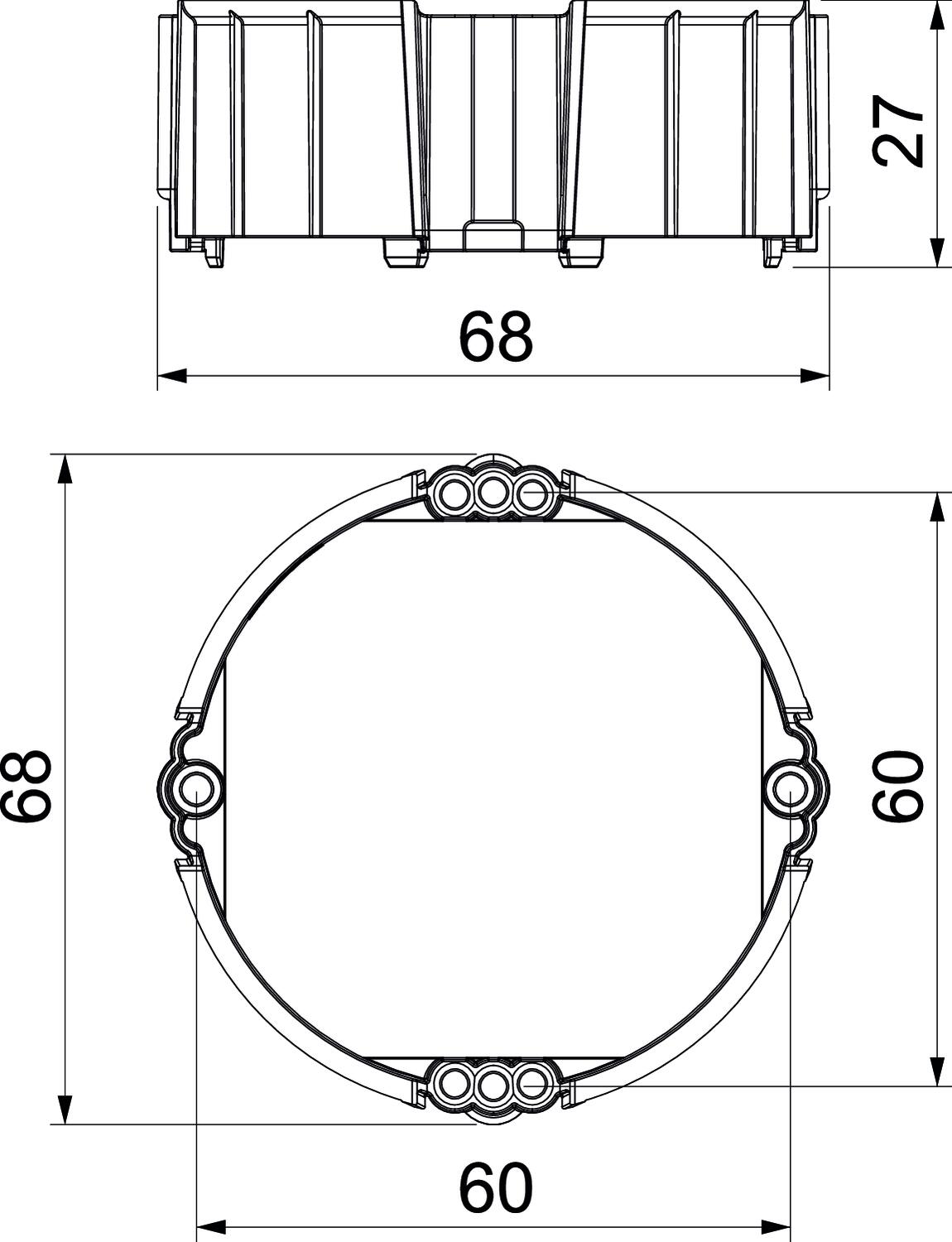 Ar skrūvēm jā Augstums 24 mm CO2 pēdas nospiedums (GWP) no šūpuļa līdz vārtiem 0,0296 kg CO2e / 1 Gabals Diametrs 68 mm Izmērs Ø60mm, H24mm Krāsa signālsarkans Materiāls Polistirols Nesatur halogēnus jā Triecienizturīgs nē ugunsizturīgs atb. VDE 0471/IEC 60695-2-11, pārbaudes temperatūra 650°C - Visi tipi
