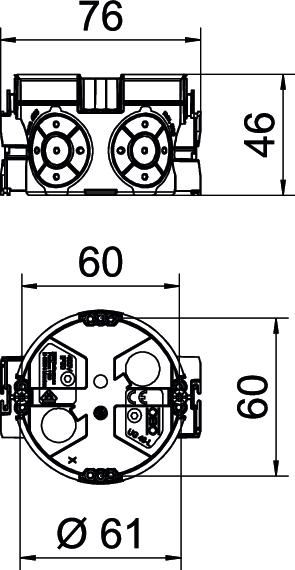 Produkta aprakstsZemapmetuma ierīču kārba ar hermētiskiem membrānas ievadiem, izmantošanai mūros ar iebūves dziļumu vismaz 46 mm.