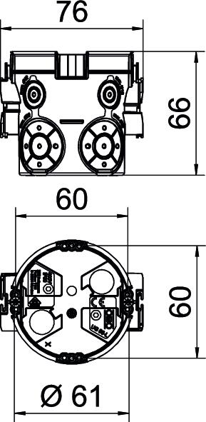 Produkta aprakstsZemapmetuma ierīču kārba ar hermētiskiem membrānas ievadiem, izmantošanai mūros ar iebūves dziļumu vismaz 66 mm.