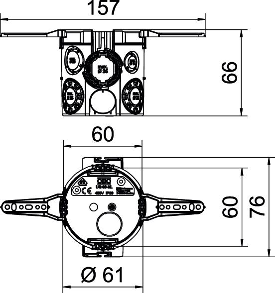 Produkta aprakstsZemapmetuma ierīču kārba ar naglas apskavām, izmantošanai mūros ar iebūves dziļumu vismaz 66 mm.