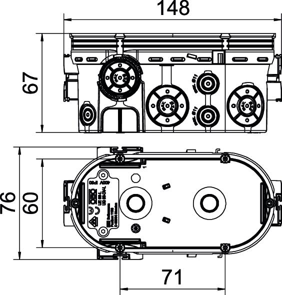 Produkta aprakstsDubulta zemapmetuma ierīču kārba ar hermētiskiem membrānas ievadiem, izmantošanai mūros ar iebūves dziļumu vismaz 67 mm.
