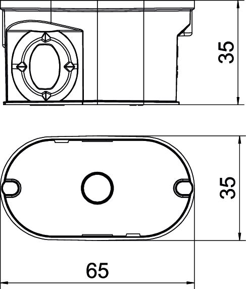 Produkta aprakstsZemapmetuma sienas izvada kārba viena kabeļa izvietošanai. Ovāla forma, izmantošanai mūros ar iebūves dziļumu vismaz 35 mm.