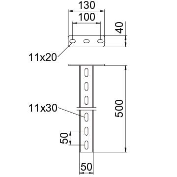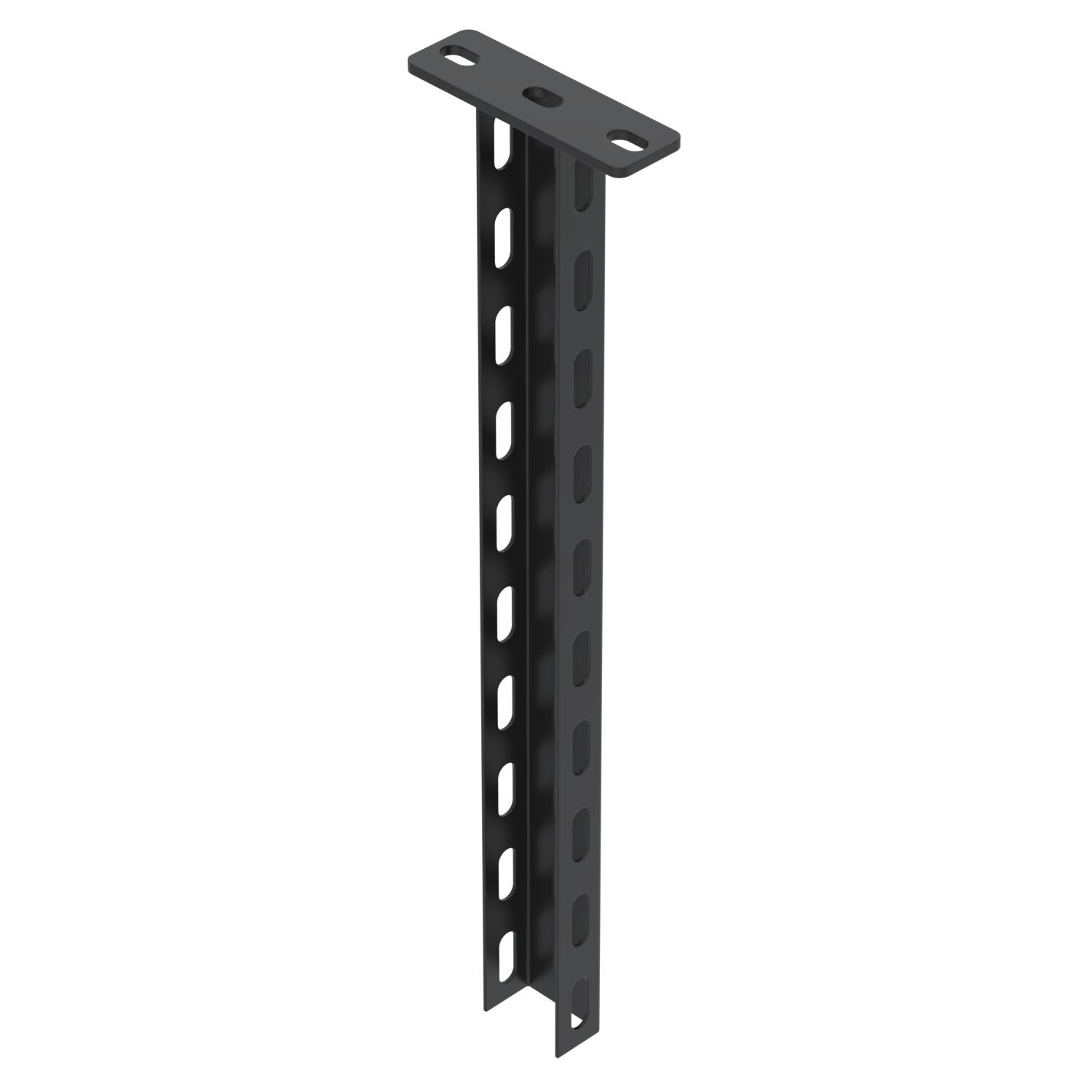 Produkta aprakstsIekārtais statnis (U profils) ar izmēriem 50 x 30 mm un ar piemetinātu augšējo plāksni. Nostiprināšanai pie horizontāliem betona griestiem un tērauda sijām. Ar pulvera pārklājumu dziļi melnā krāsā (RAL 9005). Sākot ar atbalsta rokas platumu 400 mm vai montējot atbalsta rokas pie iekaramo statņu galiem, ieteicams izmantot distances elementu DSK 25.