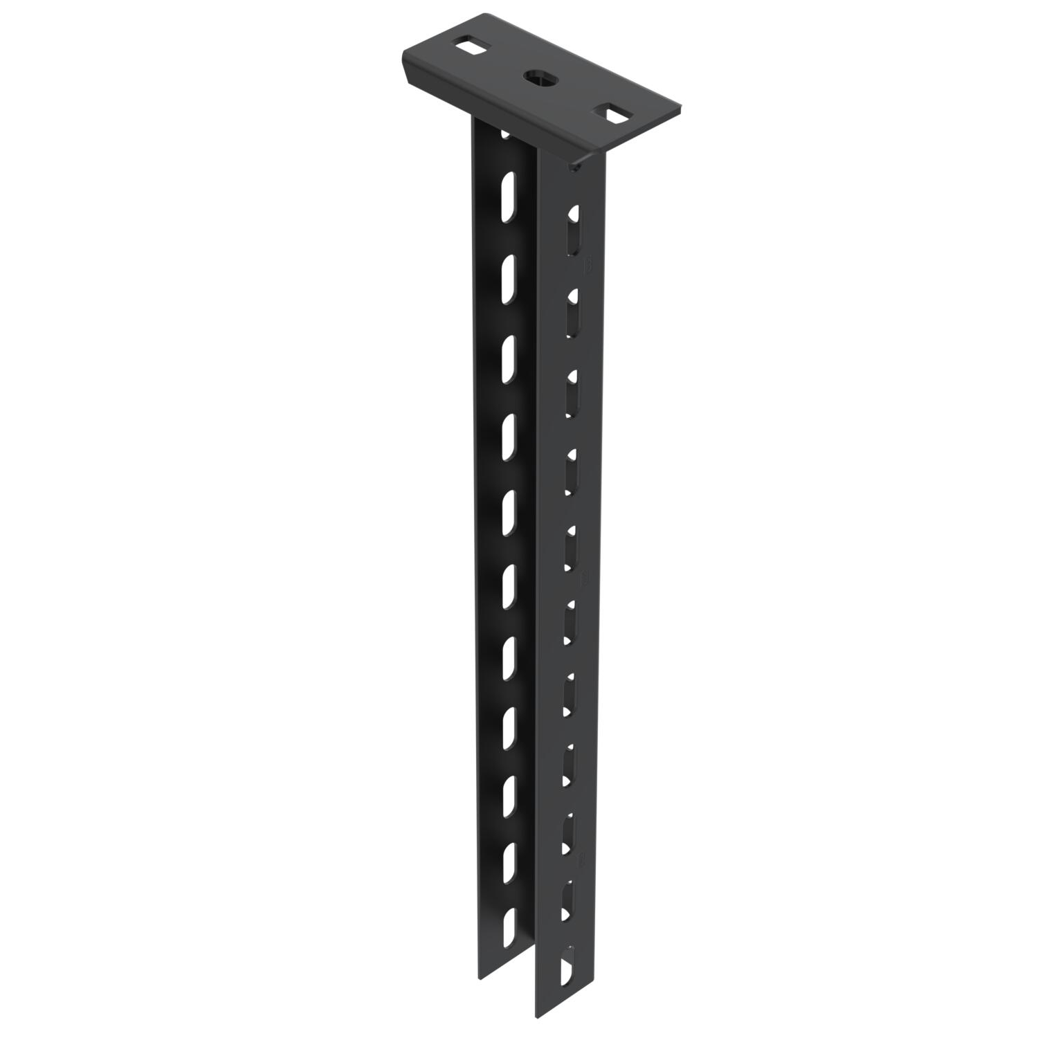 Produkta aprakstsSuspended support made from U profile with welded-on head plate, perforated to 3 sides, for the creation of support constructions for cable trays. Suitable for mounting on horizontal concrete ceilings and steel supports. Wall and support bracket can be mounted on both sides of the U suspended support. Spacer DSK to insert, from bracket width 400 mm or when mounting the bracket on the end of the suspended support. With black powder coating.