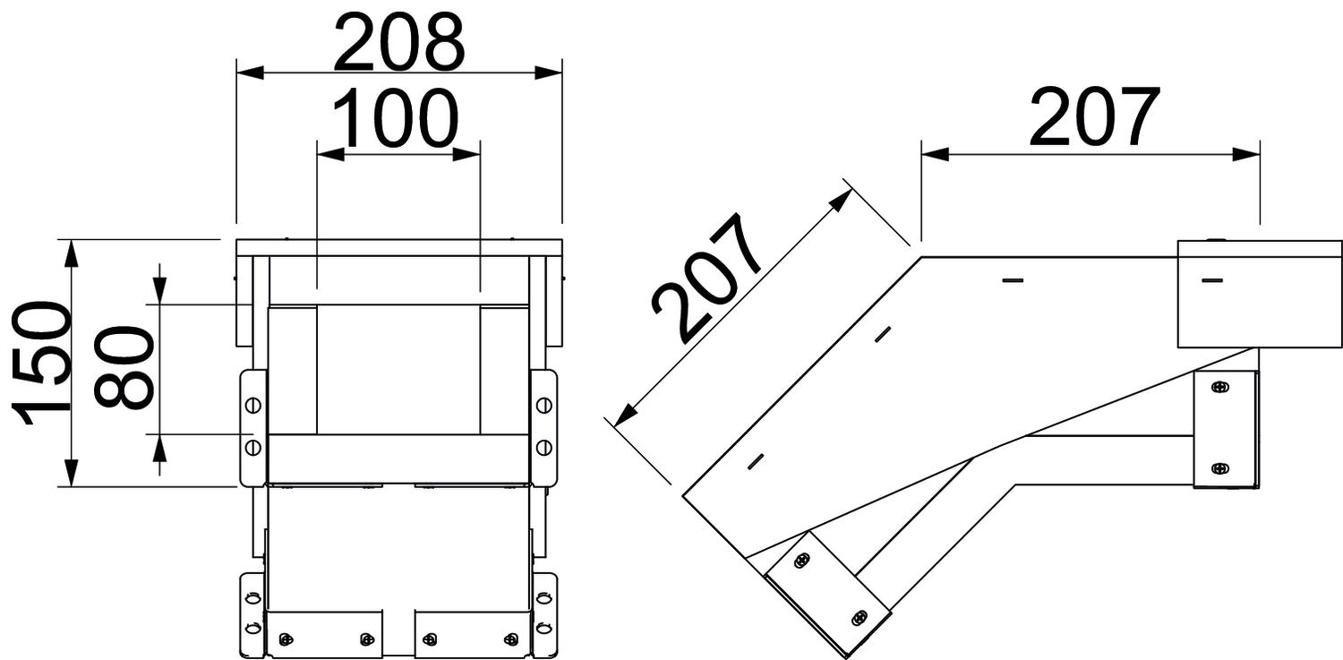Produkta aprakstsUz leju vērsts vertikāls līkums ugunsdrošajam kanālam PYROLINE® Con S EI60, tips PLCS D060810, kas sastāv no ūdens un salizturīga stikla šķiedras vieglbetona,lai kanāla maršrutā veiktu vertikālas virziena maiņas (45 °). Gatavās samontētās savienošanas detaļas nodrošina ātru montāžu uz vietas, bet brīvi uzliktais vāks – ātru revīziju un iespēju ielikt kabeļus arī vēlāk.