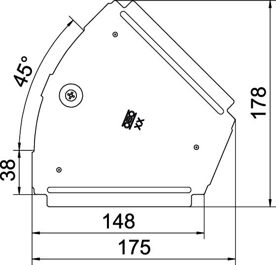 Produkta aprakstsVāks 45° līkuma fasondetaļai fiksējamām un skrūvējamām kabeļu renēm iekštelpās, kabeļu aizsardzībai no bojājumiem un netīrumiem. Stiprinājums ar iepriekš uzmontētu pagriežamu aizbīdni un uzliekot posma vāku. Piemērots visiem sānu augstumiem.