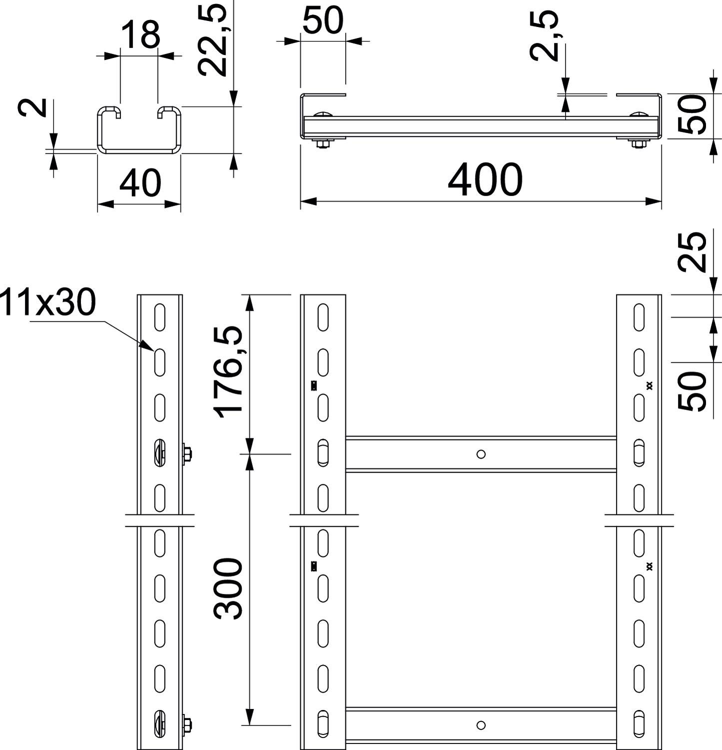 Attālums starp spraišļiem 300 mm Augstums 50 mm CO2 pēdas nospiedums (GWP) no šūpuļa līdz vārtiem 15,8862 kg CO2e / 1 Metrs Funkciju nodrošināšana jā Garums 3000 mm Izmērs 400x3000mm Izmērs B 400 mm Krāsa cinks Materiāls Tērauds Nerūsējošs tērauds, kodināts nē Platums 400 mm Sānu caurumi jā Spraišļa atveres izmērs 2,00 Spraišļu izpildījums Necaurumots profils Ugunsdrošība Funkcijas nodrošinājums - standartam atbilstoša nesošā konstrukcija Virsma karsti cinkots - Visi tipi