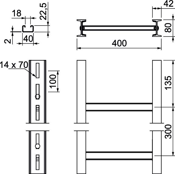 Produkta aprakstsIndustriālā vertikālo kāpņu sistēma elektrisko funkciju nodrošinājumam atb. DIN 4102 12. daļai. Atļautais apskavu tips – BS-U1-M-… FT. Piegādā nesamontētu.
