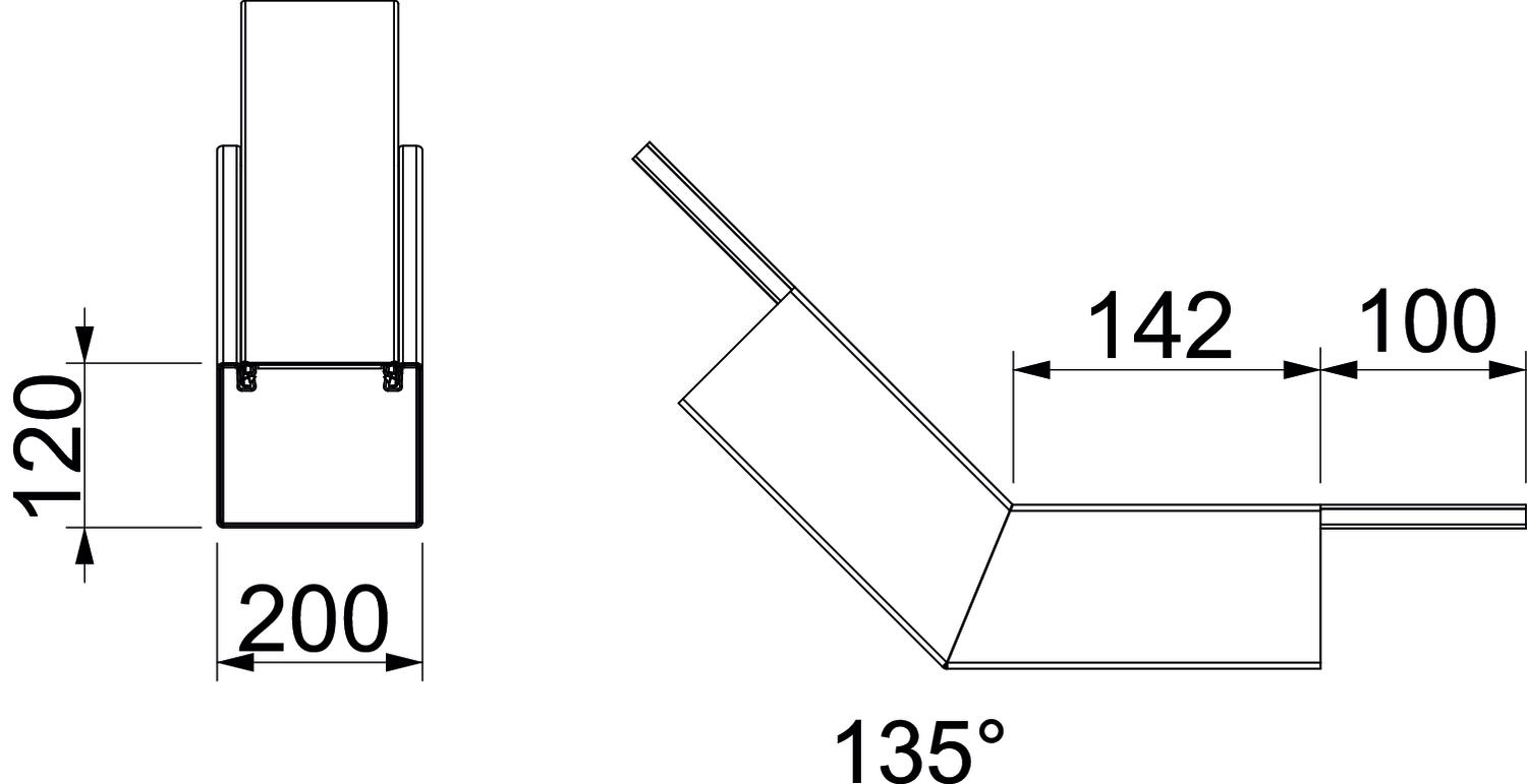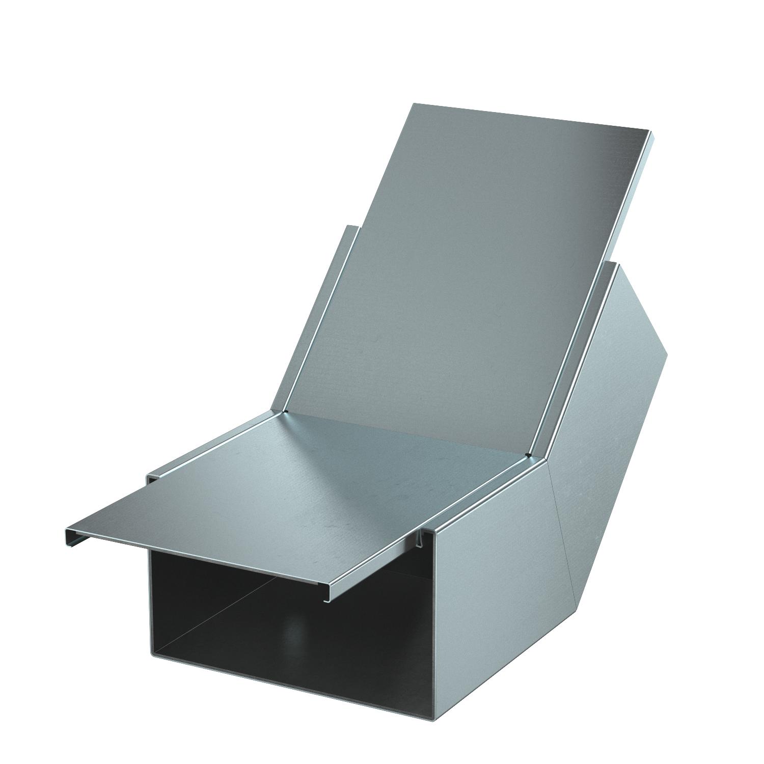 Produkta apraksts45° vertikāls līkums augšupejošā versijā ar briestošu ugunsdrošo audumu instalāciju kanālam PYROLINE® Rapid PLM. Piemērots montāžai tieši pie sienas un griestiem, montāžai zem sistēmas grīdām un uz balsta sistēmām. Salaiduma vietu montāža bez instrumentiem ar salaiduma vietu savienotāju PLM SI. Vāks tiek nofiksēts bez instrumentiem un paredzēts ātrai revīzijai un vēlākām papildu instalācijām. Vāka pārkare ļauj montēt vāku ar nobīdi vienmērīgai potenciāla izlīdzināšanai visā kanāla posmā.