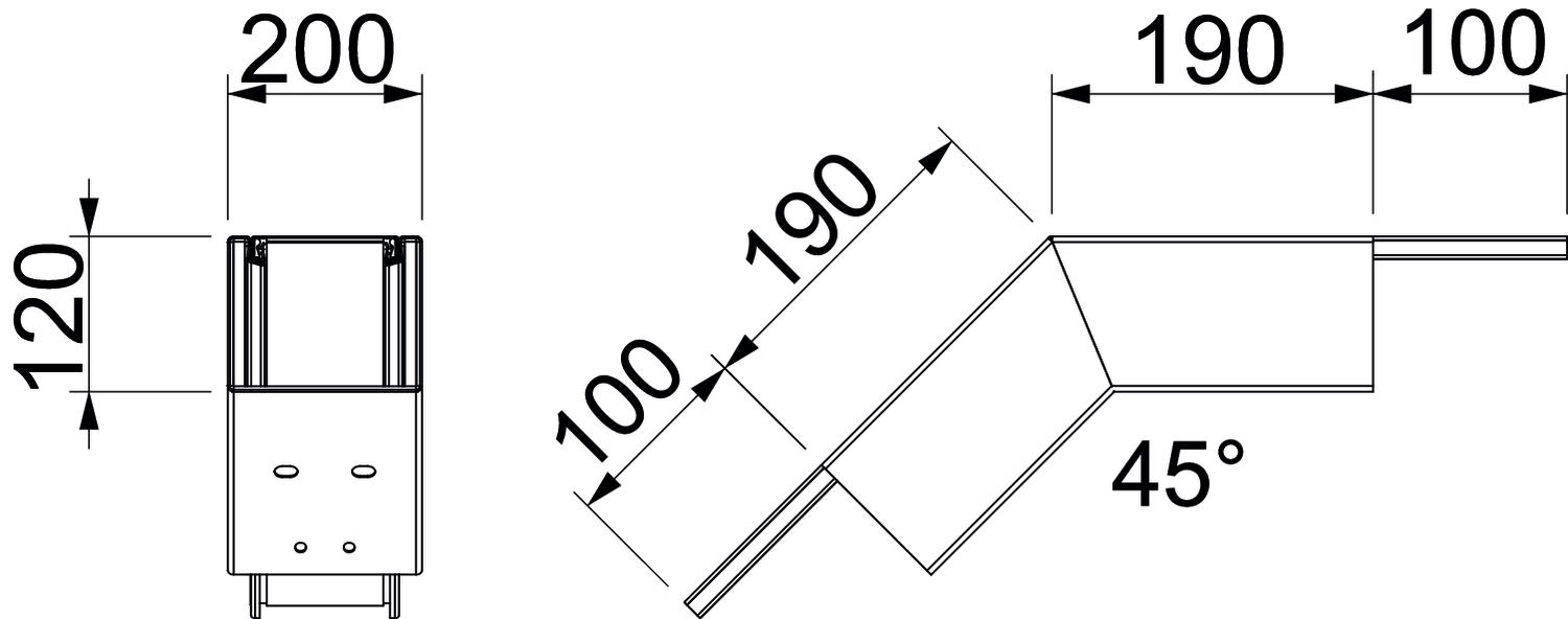 Produkta apraksts45° vertikāls līkums lejupejošā versijā ar briestošu ugunsdrošo audumu instalāciju kanālam PYROLINE® Rapid PLM. Piemērots montāžai tieši pie sienas un griestiem, montāžai zem sistēmas grīdām un uz balsta sistēmām. Salaiduma vietu montāža bez instrumentiem ar salaiduma vietu savienotāju PLM SI. Vāks tiek nofiksēts bez instrumentiem un paredzēts ātrai revīzijai un vēlākām papildu instalācijām. Vāka pārkare ļauj montēt vāku ar nobīdi vienmērīgai potenciāla izlīdzināšanai visā kanāla posmā.