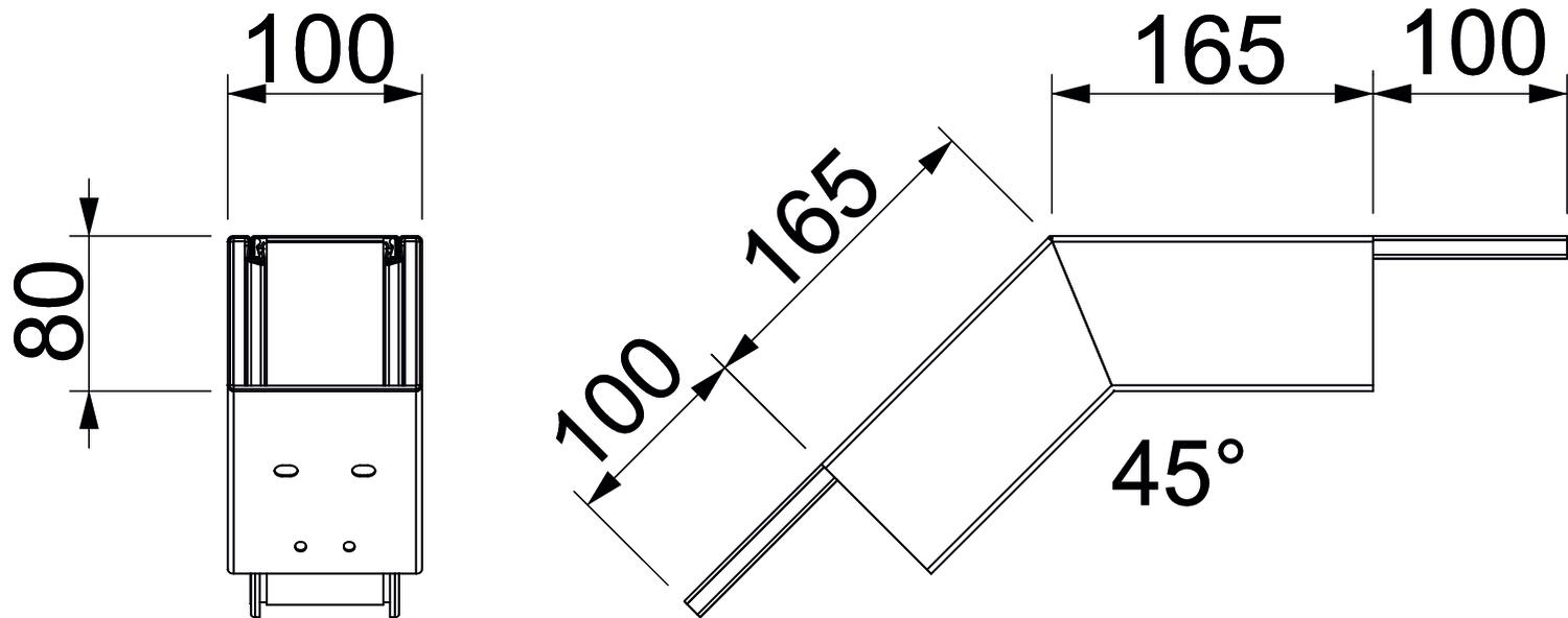 Produkta apraksts45° vertikāls līkums lejupejošā versijā ar briestošu ugunsdrošo audumu instalāciju kanālam PYROLINE® Rapid PLM. Piemērots montāžai tieši pie sienas un griestiem, montāžai zem sistēmas grīdām un uz balsta sistēmām. Salaiduma vietu montāža bez instrumentiem ar salaiduma vietu savienotāju PLM SI. Vāks tiek nofiksēts bez instrumentiem un paredzēts ātrai revīzijai un vēlākām papildu instalācijām. Vāka pārkare ļauj montēt vāku ar nobīdi vienmērīgai potenciāla izlīdzināšanai visā kanāla posmā.